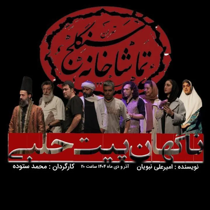 عوامل نمایش «ناگهان پیت حلبی»: نویسنده: امیرعلی نبویان، کارگردان: محمد ستوده و بازیگران شاهین علایینژاد، جمشید صفری، محمد ستوده، محمد منصوری، رضا نورزاده، امید علیزاده، هدیه فدایی، مائده عباسی، یگانه راستی، عوامل اجرایی: دستیار کارگردان: آزالیا پرستش، طراح صحنه: امیر خراسانی، طراح لباس: آزالیا پرستش، دستیار صحنه و طراح لباس: مریم نقدی، سرپرست گروه موسیقی، نوازنده تار و خواننده: شایان دهقانی، نوازنده تنبک و دف: ویهان فاضلی، طراح نور و صدا: میثم کهالی، عکاس: زهرا اصغری، ساخت تیزر و تیوال: رضا گودرزی.