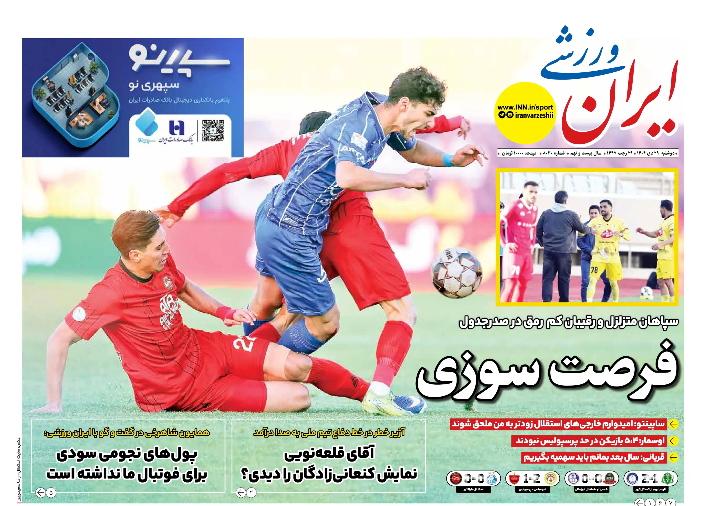 روزنامههای ورزشی دوشنبه ۲۹ دی ماه ۱۴۰۴