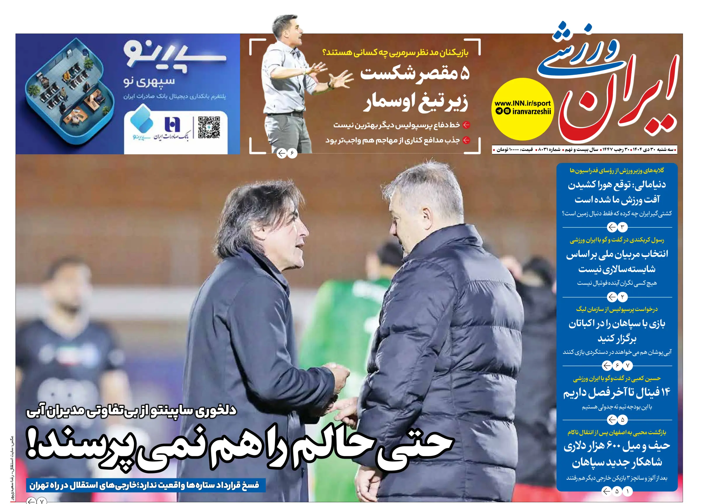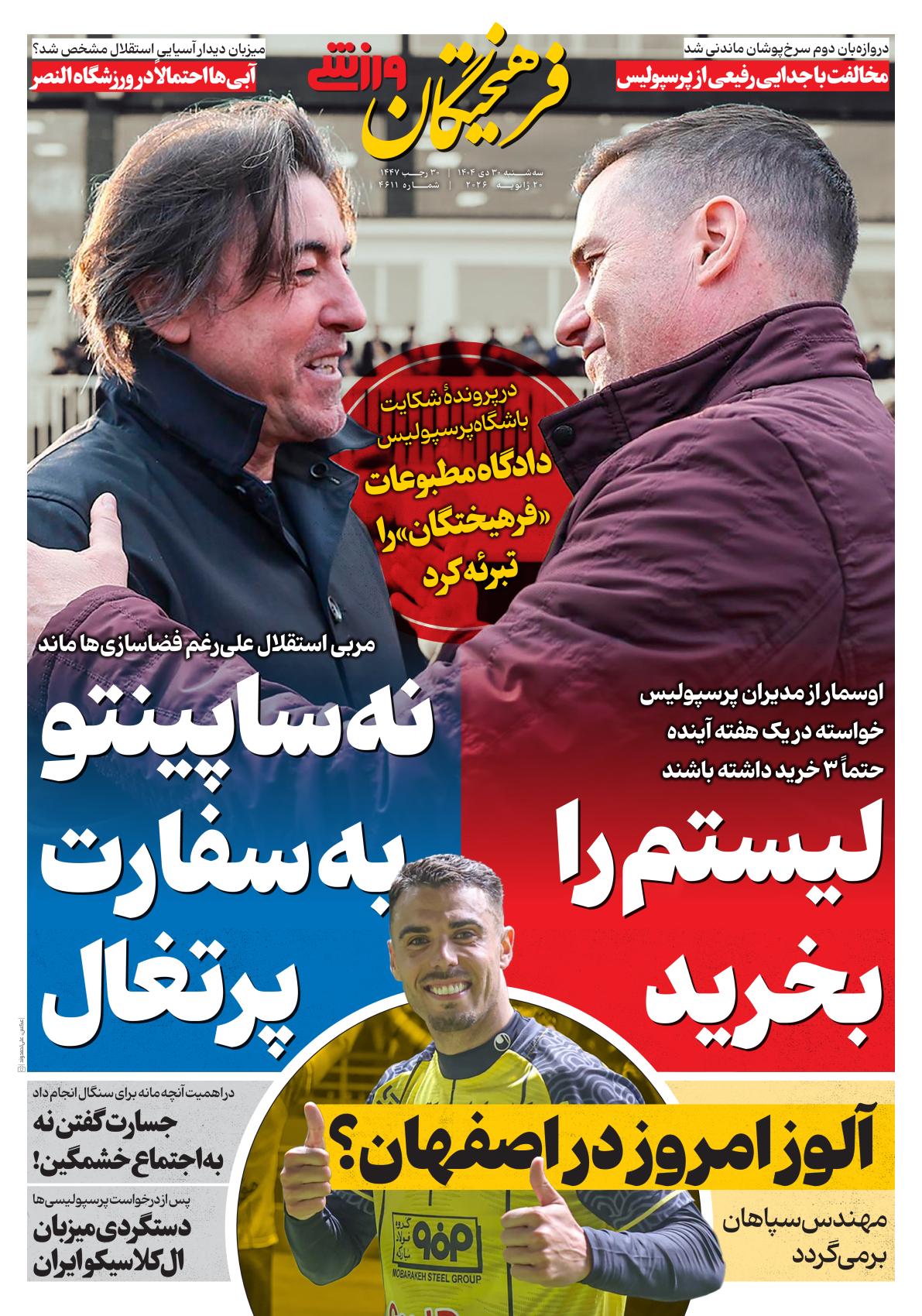 روزنامههای ورزشی سه شنبه 30 دی ماه ۱۴۰۴