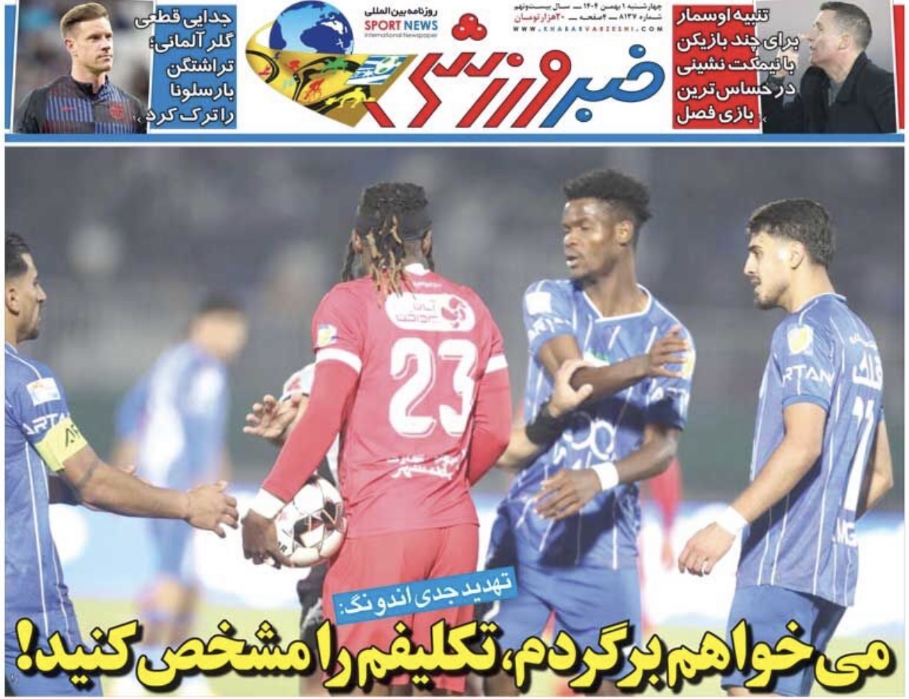 روزنامه های ورزشی چهارشنبه اول بهمن ماه 1404