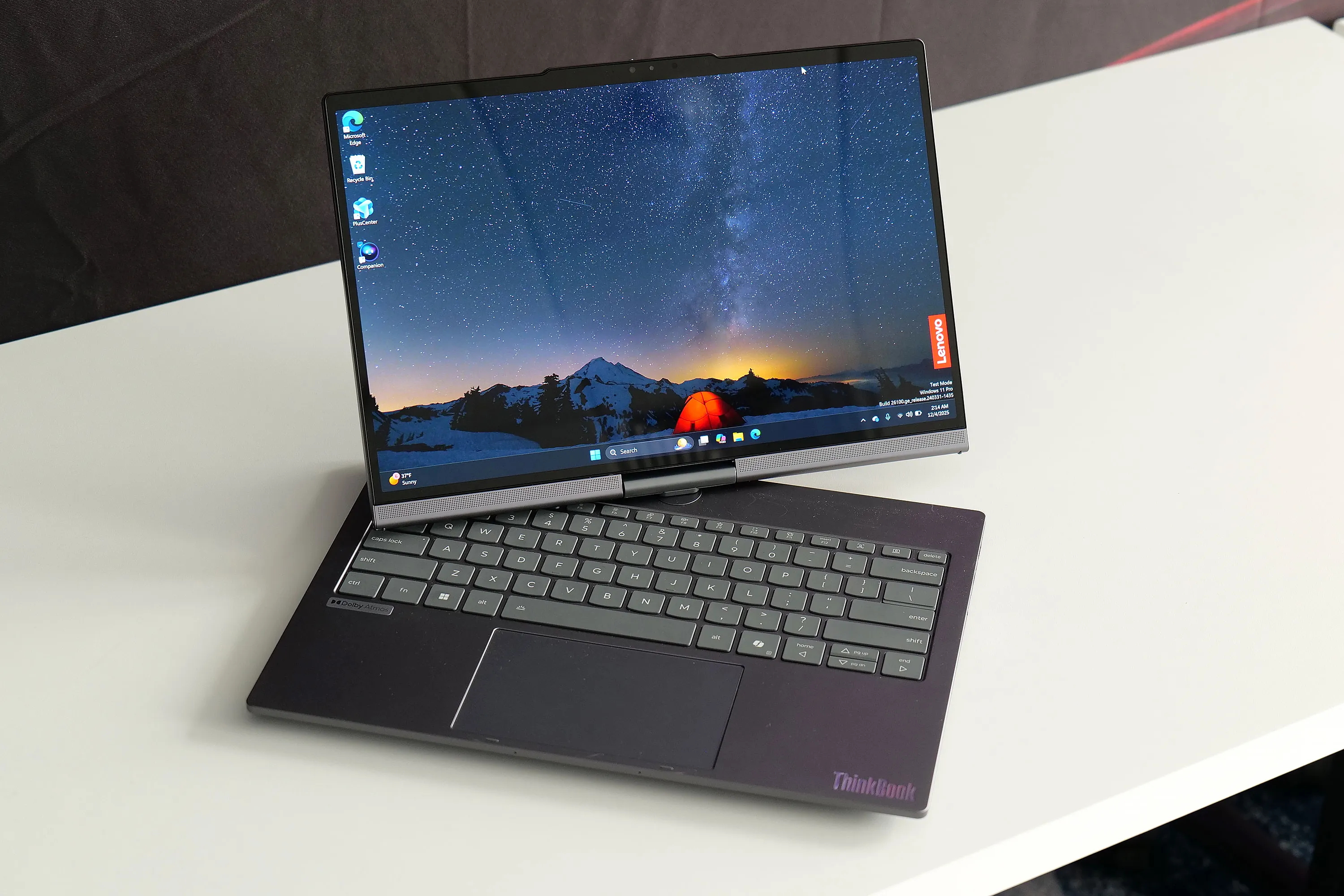 لنوو با معرفی ThinkBook Plus نسل ۷ Auto Twist نشان داد که نوآوری در فرمفکتور لپتاپها به پایان نرسیده است. لولای موتوردار دوگانه در این دستگاه، فراتر از یک ویژگی ظاهری عمل میکند و با تشخیص هوشمند موقعیت کاربر، صفحهنمایش را بهصورت خودکار در زاویه دید بهینه تنظیم میکند. موتورهای الکتریکی جدید که وظیفه چرخش نمایشگر را بر عهده دارند، نسبت به نمونههای آزمایشی قبلی سریعتر و کمصداتر شدهاند و امکان تغییر حالت خودکار بین لپتاپ، تبلت و حالت ارائه را فراهم میکنند.