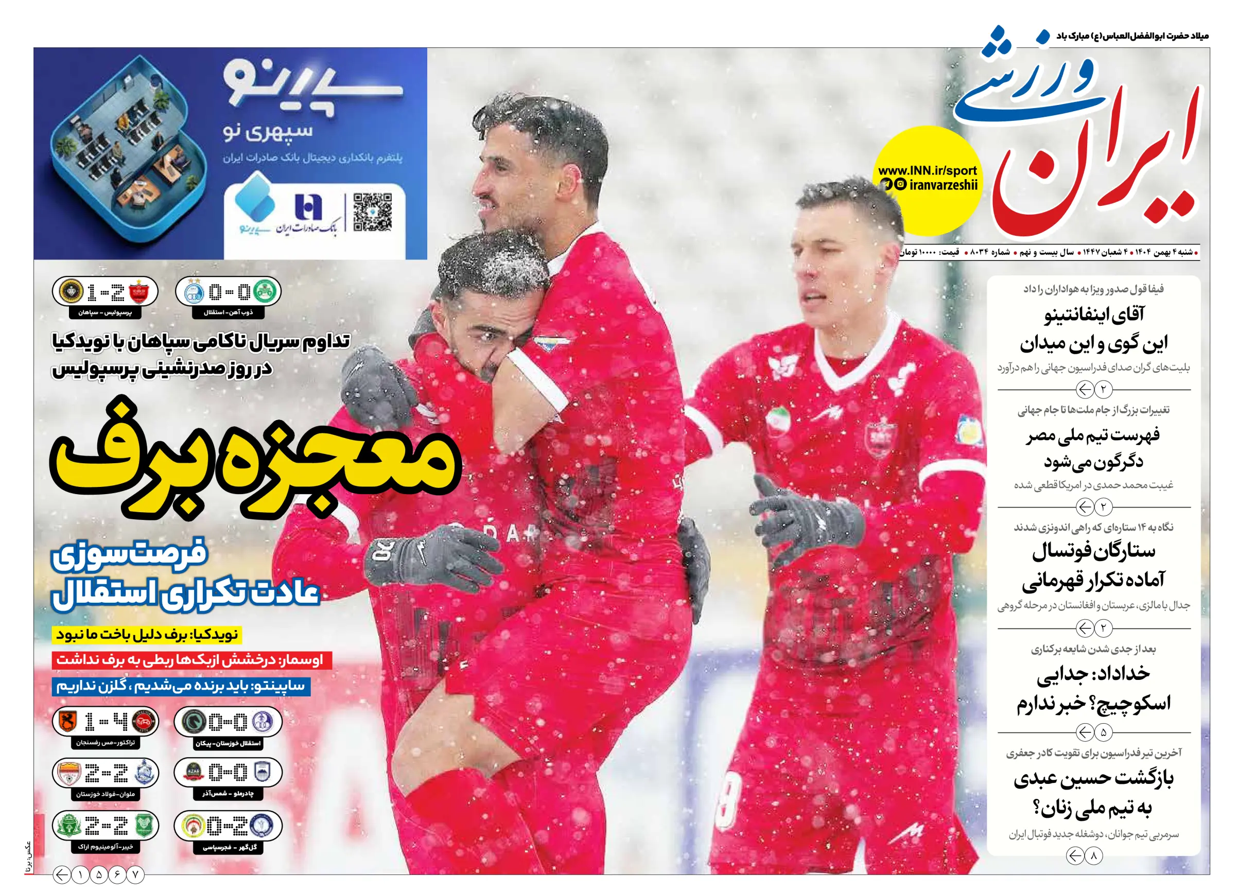 روزنامه های ورزشی شنبه 4 بهمن ماه 1404