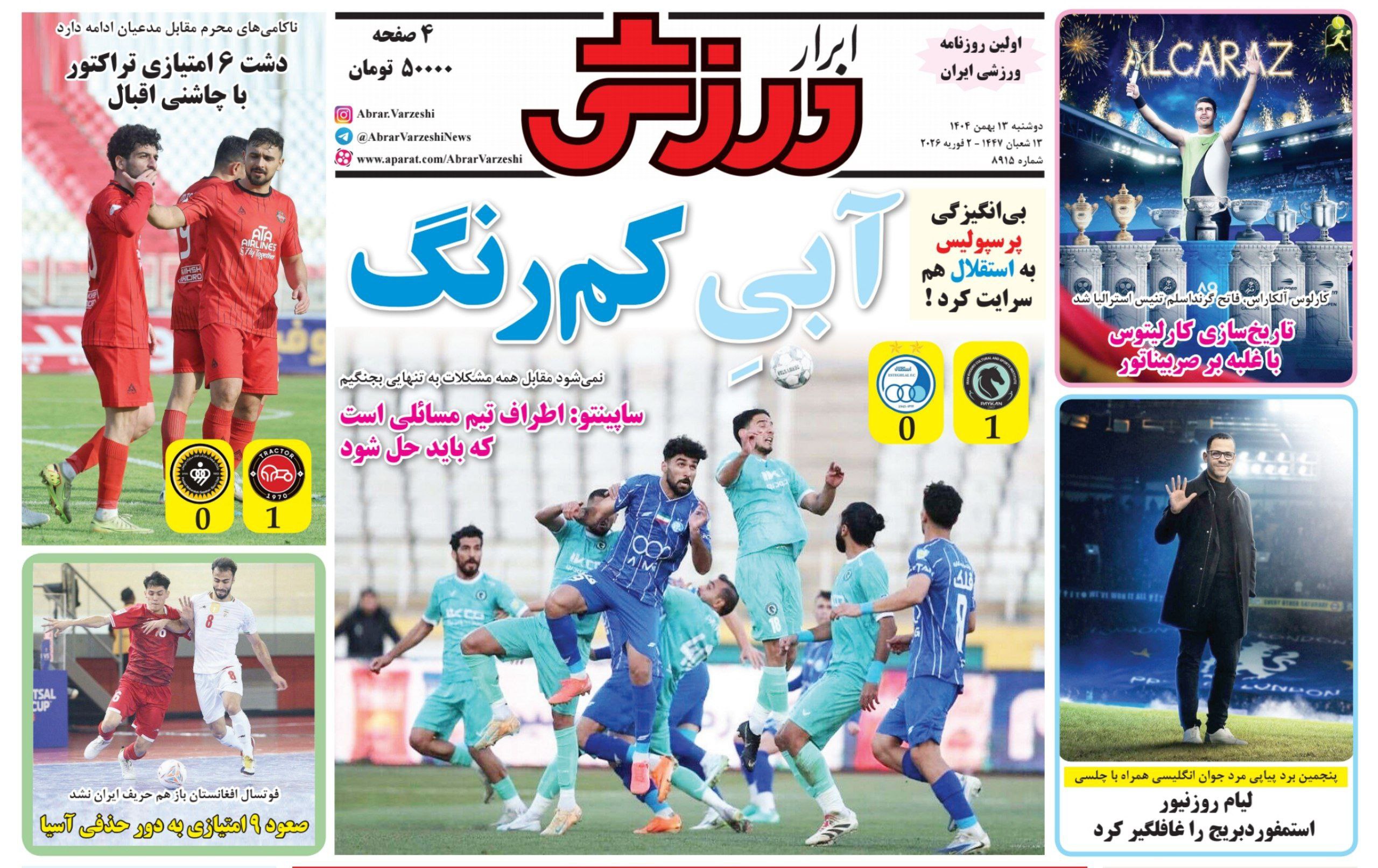روزنامه های ورزشی دوشنبه 6 بهمن ماه 1404