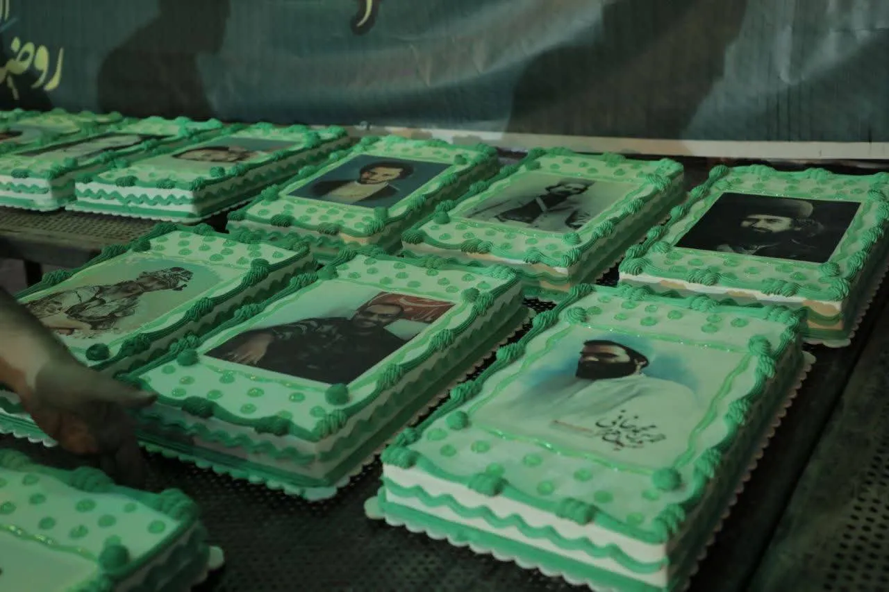 مرکز ثقل این مراسم، یک کیک ۱۴ متری است؛ کیکی که به صورت نمادین به ۲۸ قطعه نیم‌متری تقسیم شده و روی هر قطعه، تصویر یک شهید نقش بسته است. از شهدای صدر اسلام تا شهدای سال‌های اخیر، از میدان‌های نبرد صدر اسلام تا خیابان‌های امروز مقاومت، همگی در یک خط ممتد کنار هم قرار می‌گیرند. این کیک یک پیام است: شادی نیمه‌شعبان بدون یاد شهدا ناقص است.