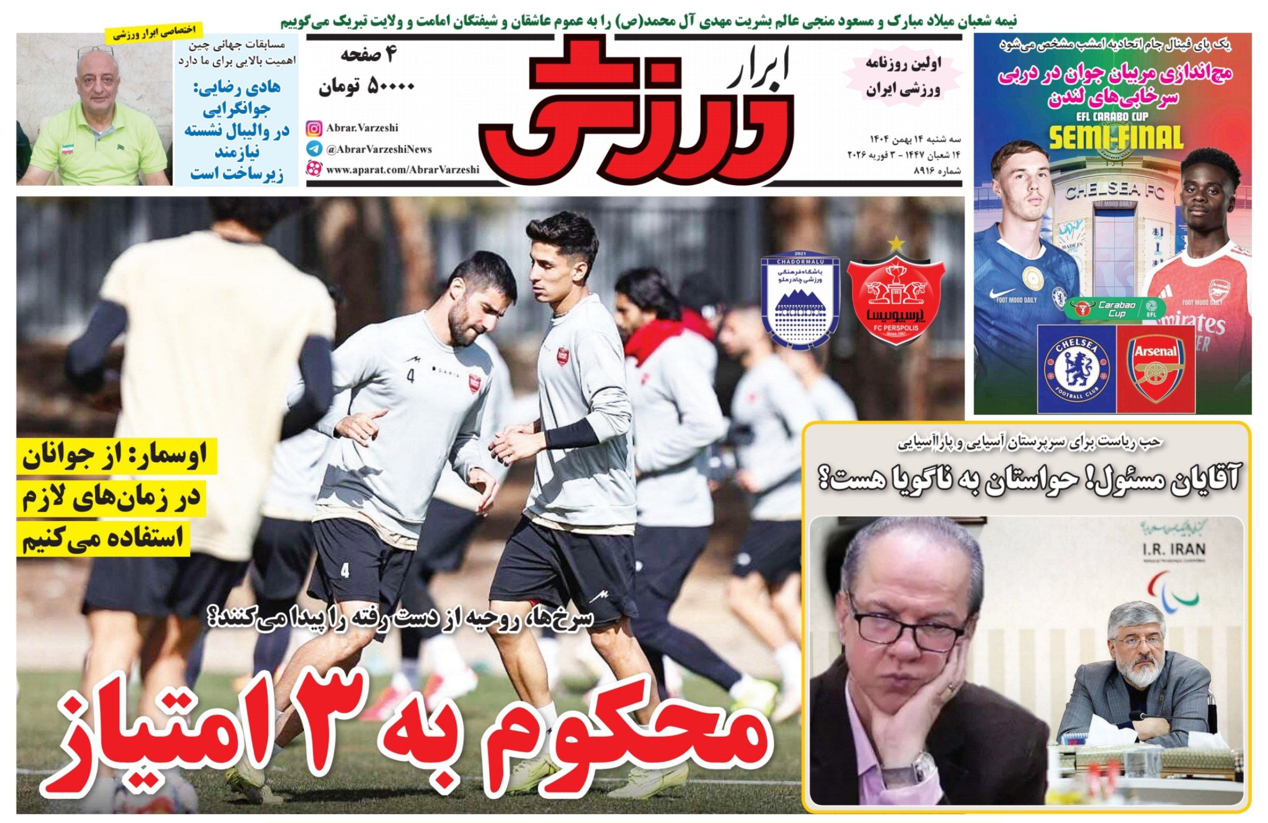 روزنامه های ورزشی سه شنبه 14 بهمن ماه 1404