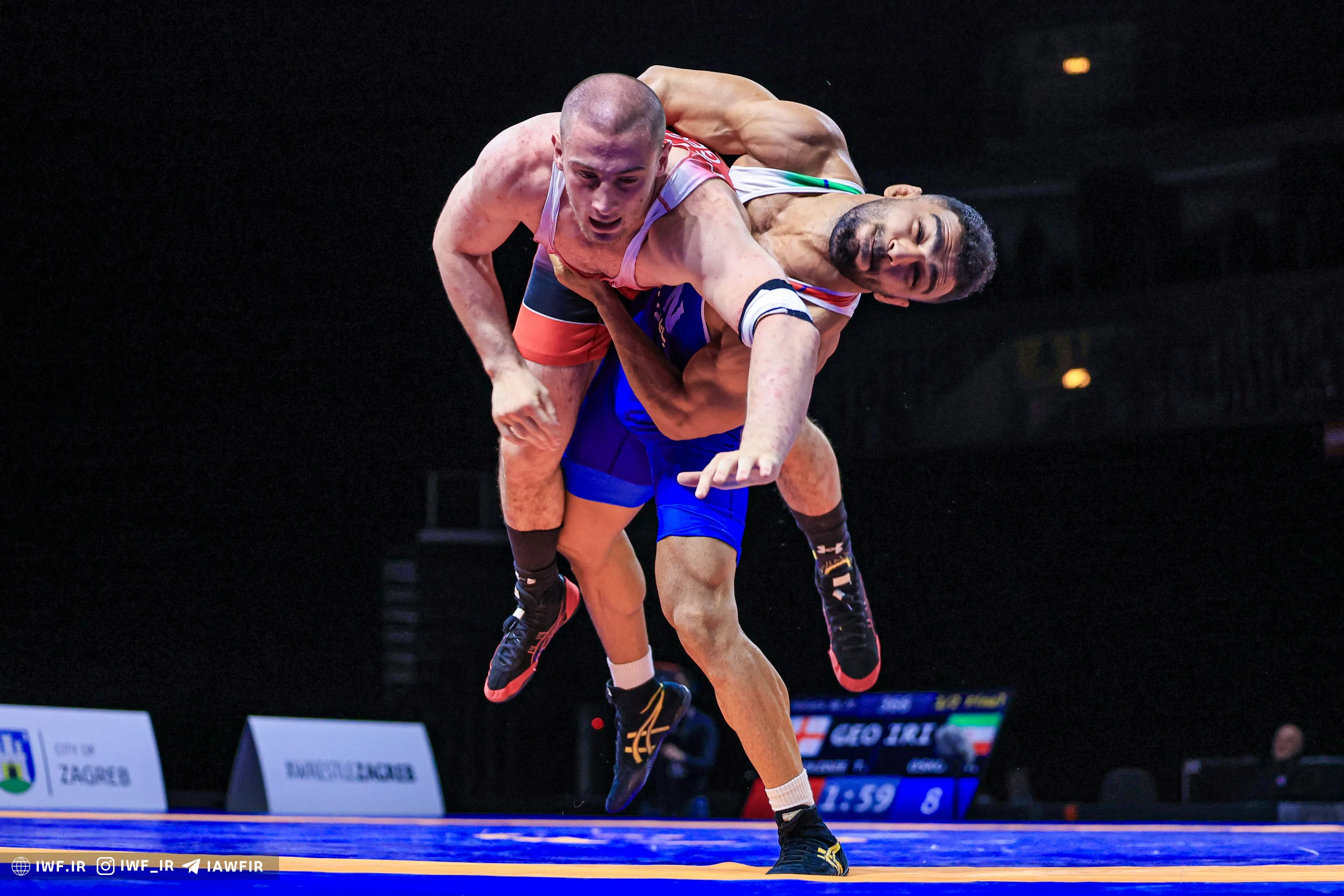 در وزن ۹۷ کیلوگرم ناصر علیزاده در دور اول با نتیجه ۱۰ بر ۱ کریستین لوکاک از کرواسی را از پیش رو برداشت. وی در دور بعد با نتیجه ۱ بر صفر و با توجه به مصدومیت از ناحیه دست به کشتی ادامه نداد و مغلوب یوسوف ماتسییف از قزاقستان شد. محمدهادی صیدی در دور اول با نتیجه ۹ بر صفر فیلیپ سمتکو از کرواسی را مغلوب کرد. وی در دور بعد با نتیجه ۵ بر ۱ مغلوب الکس زوکه دارنده مدال نقره جهان از مجارستان شد و با توجه به حضور این حریف در دیدار فینال به گروها بازندهها رفت. وی در این گروه با نتیجه ۴ بر ۱ دانیل گاستل از اتریش را مغلوب کرد و به دیدار رده بندی راه یافت. صیدی در این دیدار با نتیجه ۱ بر ۱ از سد یوسف ماتسییف از قزاقستان گذشت و به مدال برنز رسید.