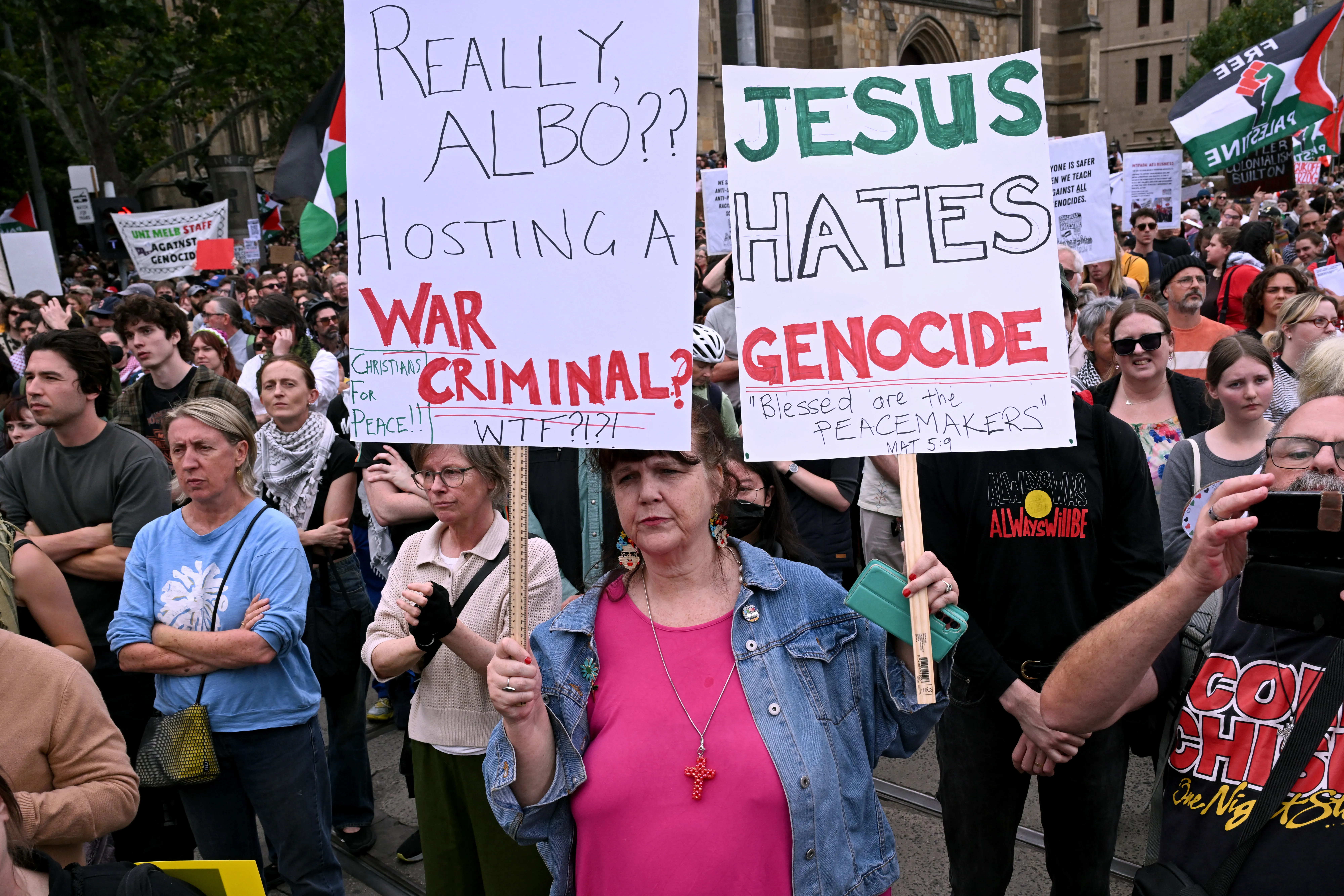 مردم استرالیا علیه رئیس جمهور رژیم صهیونی با شعار «جنایتکار جنگی مورد استقبال نیست» تظاهرات کردند. رئیس جمهور رژیم صهیونیستی در سفر چهار روزه به استرالیا با بازماندگان و خانواده‌های قربانیان دیدار کرد در حالی که ایزاک هرتزوگ با قربانیان حمله به ساحل بوندی دیدار می‌کند، تظاهرات در سیدنی و ملبورن خواستار پایان اشغالگری رژیم صهیونیستی شدند.هرتزوگ این اعتراضات را عمدتاً تلاش‌هایی برای «تضعیف و سلب مشروعیت» حق موجودیت اسرائیل توصیف کرد.