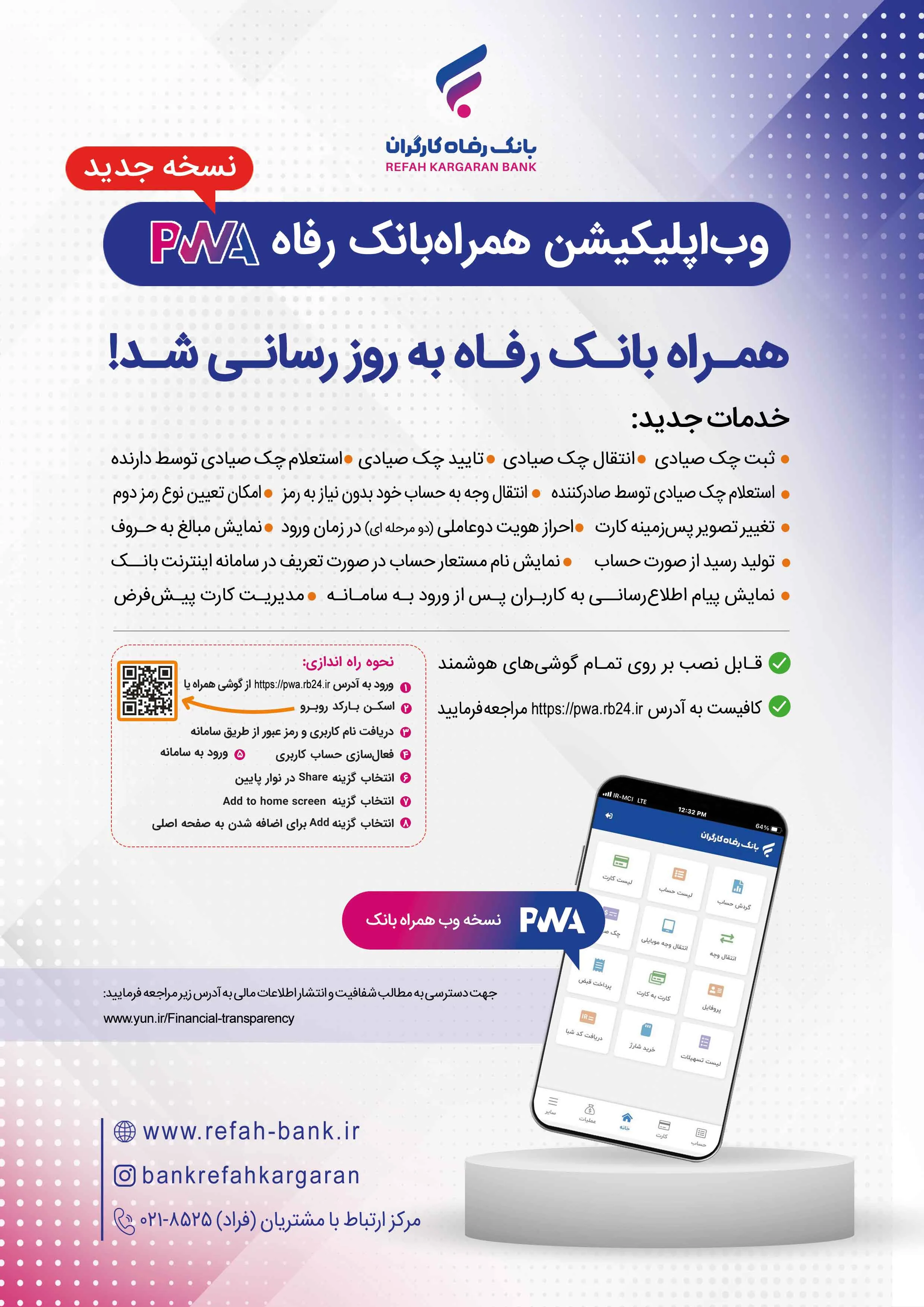 سامانه موبایل بانک مبتنی بر وب (PWA) بانک رفاه کارگران بهروزرسانی شد