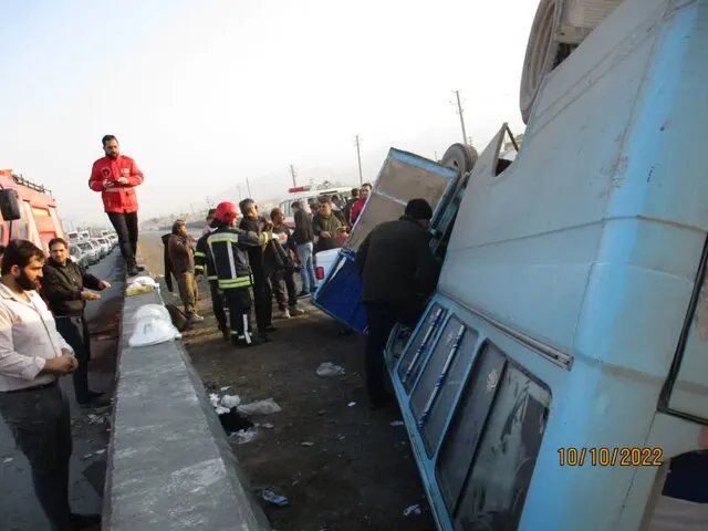 جزئیاتی از واژگونی مینی‌بوس کارگران در محور ساوه–شهر صنعتی کاوه؛ ۱۰ مصدوم تا این لحظه