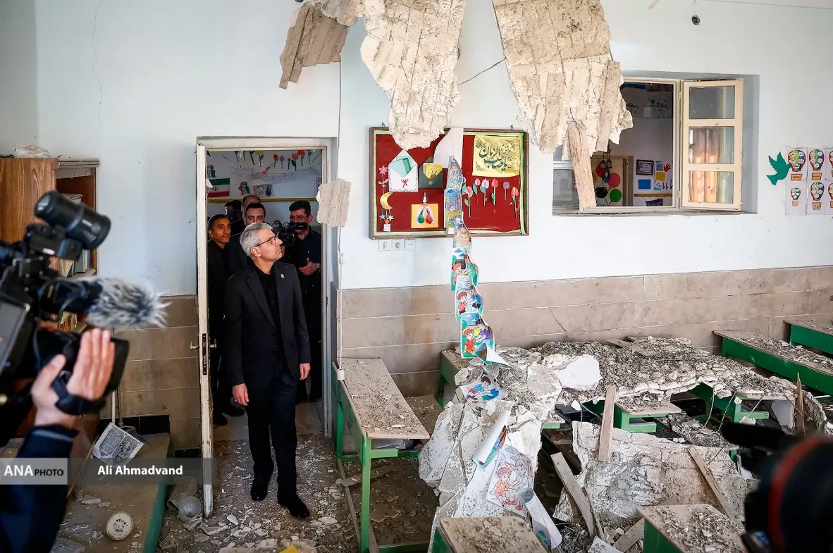 اين مدرسه براثر حمله موشکی آمريكا/اسرائیل، آسيب جدى ديده و از مدار آموزش خارج شده است، اما روح نشاط و امید و سرزندگی از در و دیوار راهروها وکلاسها هویدا بود. عکسها و كاردستیهای دانشآموزان هریک به زبانی افتخار به ایران وعشق به میهن را فریاد میزدند.