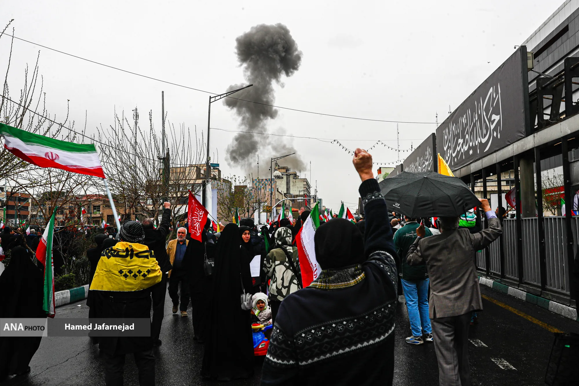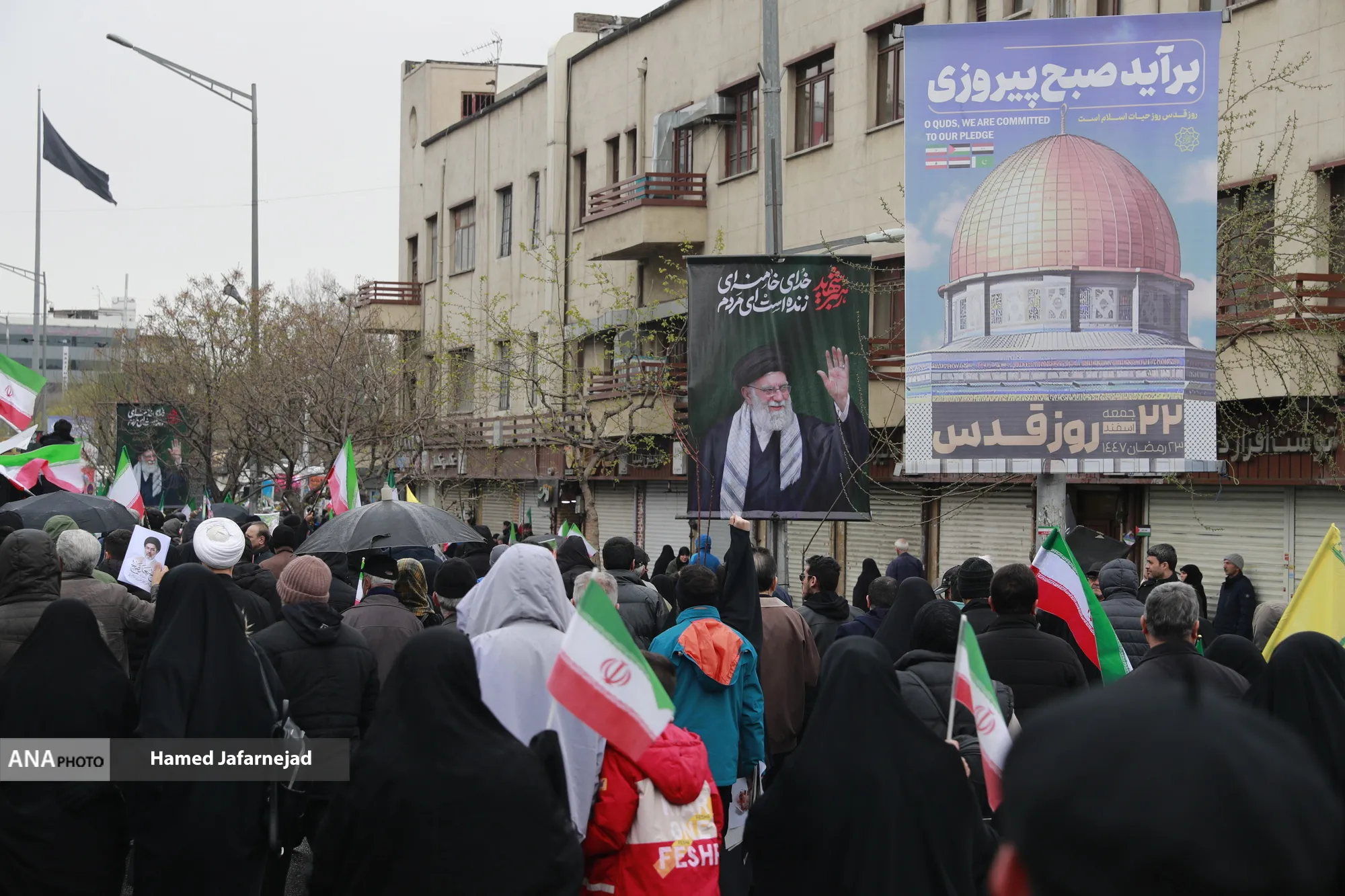 جنگنده های رژیم صیونیستی -آمریکایی با بمباران اطراف مسیر راهپیمایی مردم تهران در آخرین جمعه ماه مبارک رمضان۲۲ اسفند ۱۴۰۴ و روز جهانی قدس، نتوانستند هیچ خللی در عزم و اراده مردم سلحشور و شهادت طلب مردم روزه دار و انقلابی تهران ایجاد کنند و همچنان مردم با مشت های گره کرده به راهپیمایی خود ادامه دادند.
