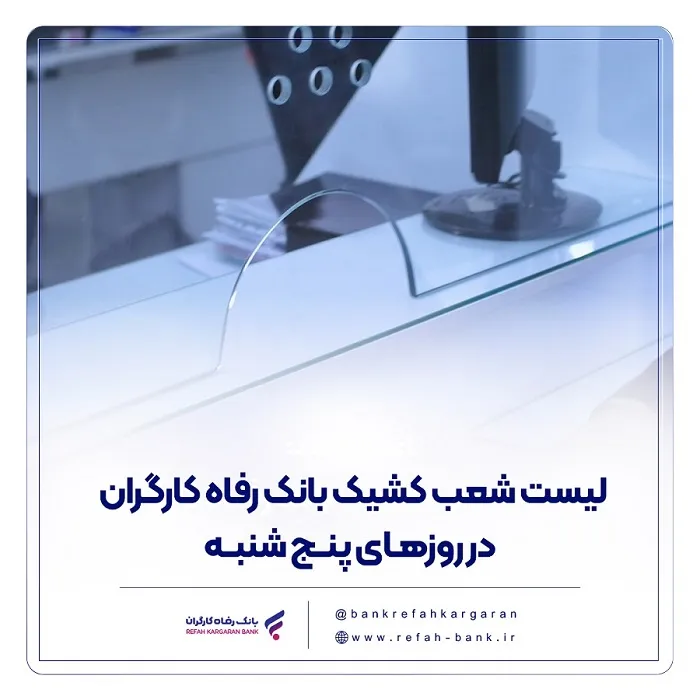 شعب کشیک بانک رفاه کارگران در استان تهران در روز پنجشنبه ۶ فروردین ماه ۱۴۰۵ آماده ارائه خدمات به مشتریان و هموطنان هستند.