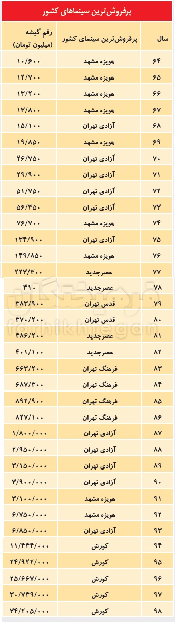 پرفروشترین سینماهای کشور