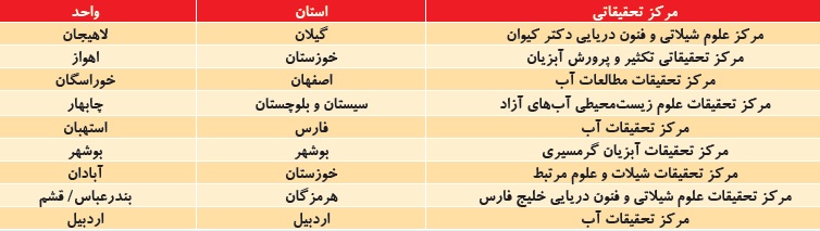 استانها و واحدهای فعال در حوزه دریا