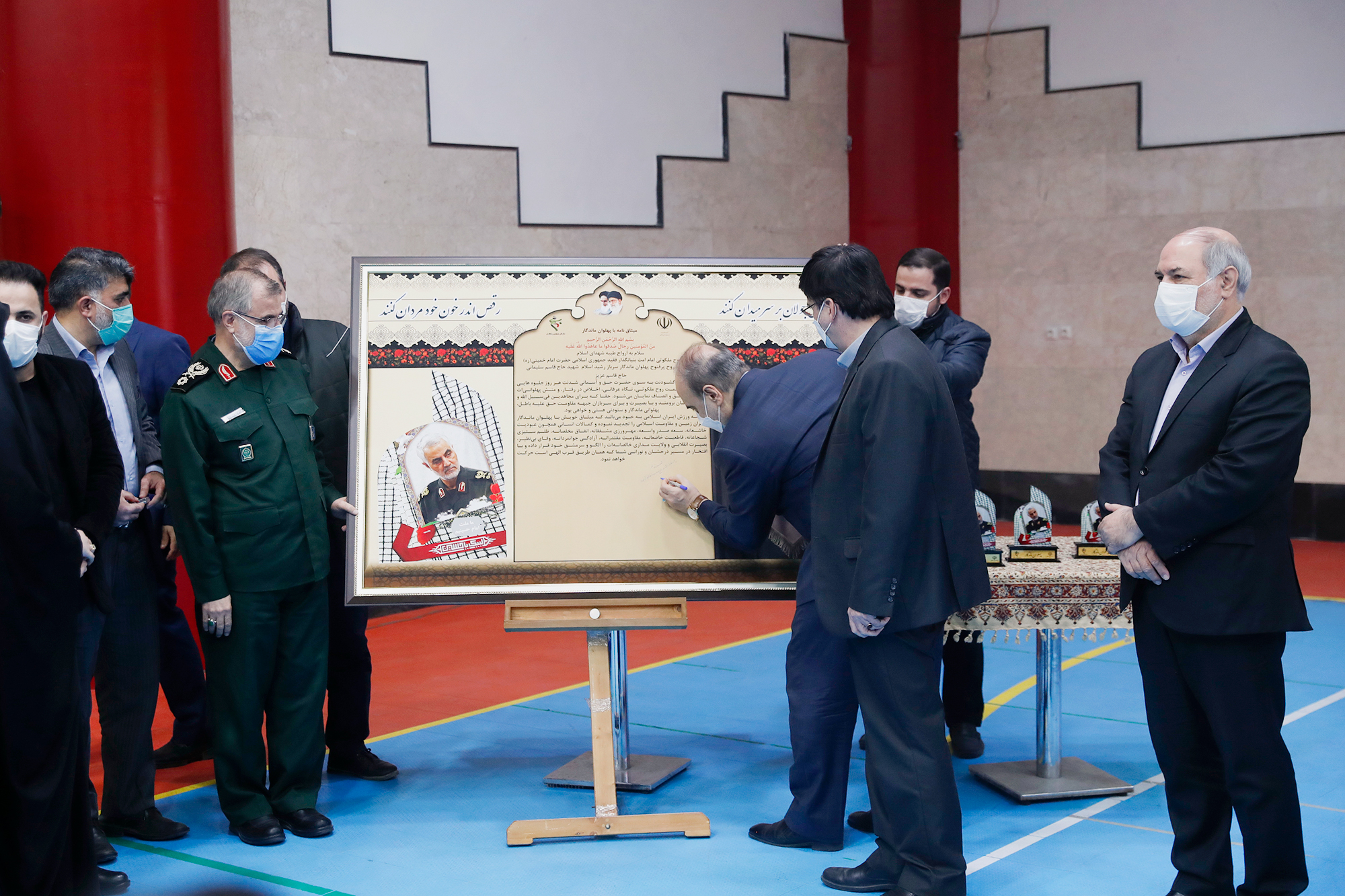 نخستین سالگرد سردار سلیمانی با عنوان «پهلوان ماندگار» ظهر امروز با حضور دکتر مسعود سلطانی فر وزیر ورزش و جوانان، سردار پور جمشیدیان معاون هماهنگ کننده نیروی زمینی سپاه پاسداران و همچنین خانواده شهید شاخص ورزش کشور در سال 99 شهید زمانی نیا در فدراسیون ورزش های جانبازان و معلولین برگزار شد.