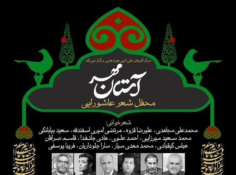 محفل شعر عاشورایی «آستان مهر» به همت مرکز آفرینش‌های ادبی حوزه هنری برگزار می‌شود.