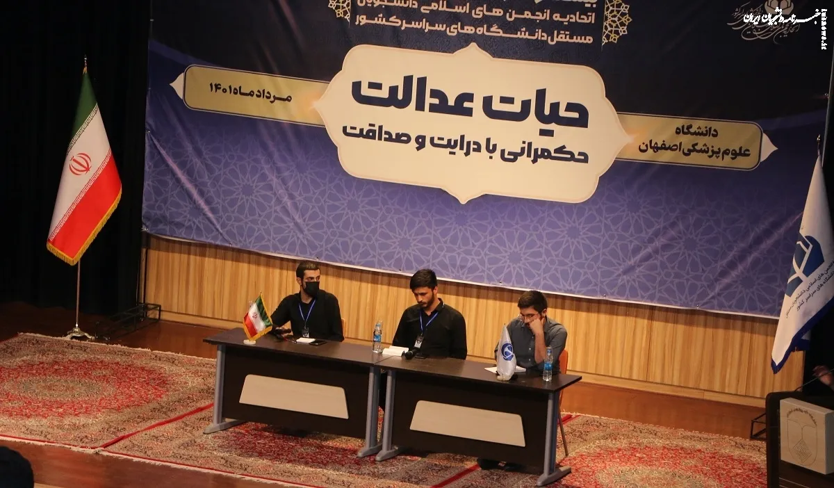 به گزارش گروه دانشگاه خبرگزاری آنا، بیست و سومین نشست سالیانه اتحادیه انجمنهای اسلامی دانشجویان مستقل دانشگاههای سراسر کشور با «حیات عدالت، حکمرانی با درایت و صداقت» از تاریخ ۲۳ تا ۲۹ مردادماه ۱۴۰۱ در دانشگاه علوم پزشکی اصفهان در حال برگزاری است؛ که در این نشست باحضور امیرعباس دردانه، دبیرسابق انجمن اسلامی دانشجویان مستقل دانشگاه علوم پزشکی یاسوج، محسن شکیبامنش، دبیر انجمن اسلامی دانشجویان مستقل دانشگاه بیرجند و سجاد مشهدی حسن، دبیر انجمن اسلامی دانشجویان دانشگاه سمنان به برگزاری میزگرد دانشجویی با موضوع ضرورت و لازمه فعالیت دانشجویی در دانشگاه پرداختند.
