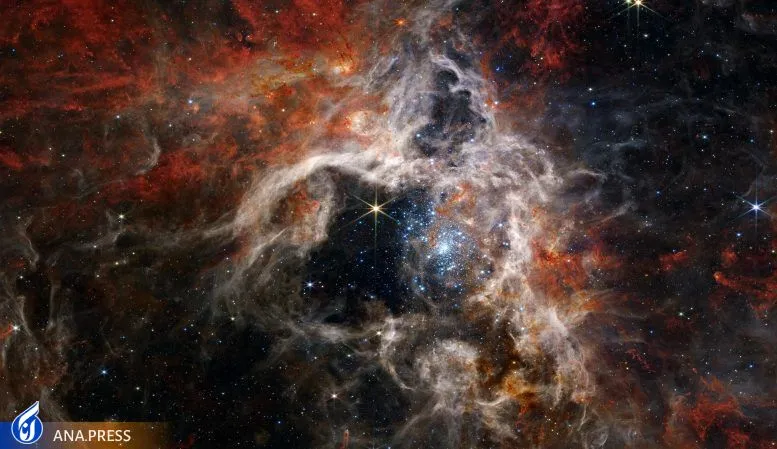 به گزارش گروه دانش و فناوری خبرگزاری آنا، به نقل از پایگاه خبری سایتِکدِیلی (SciTechDaily)، تلسکوپ فضایی جیمز وب ناسا، چشمانداز جدیدی از سحابی رتیل یا دورادوس ۳۰ (۳۰ Doradus) ارائه میدهد؛ اخترشناسانی که در حال مطالعه درخصوص شکلگیری ستارهها هستند، این منطقه را میشناسند. نام مستعار آن ریشه در شباهتش به عنکبوت دارد. در هر صورت، از چشمانداز تلسکوپ وب، سرتاسر منطقه، ظاهری شبیه به خانه رُتیل پیدا کرده است؛ لانهای که با ابریشم تابیده پوشیده شده است. سحابی رتیل هزاران ستاره جوان و در حال شکلگیری را در خود جای داده است که تلسکوپ وب برای اولین بار، بسیاری از آنها را آشکار کرده است.