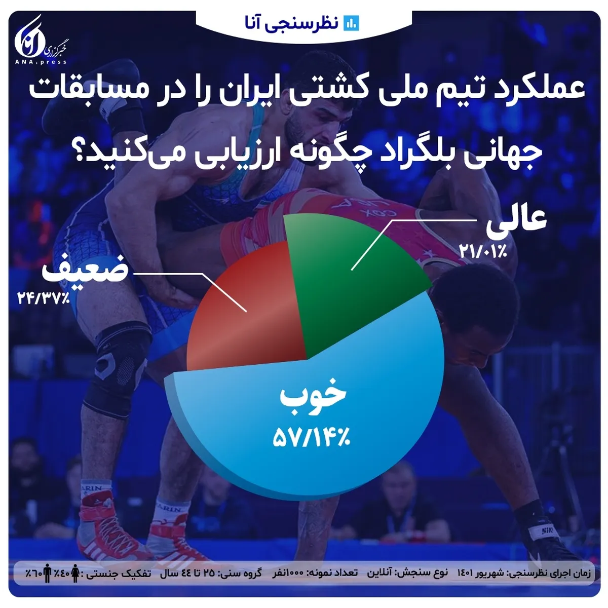 مخاطبان خبرگزاری آنا عملکرد تیمهای کشتی آزاد و فرنگی را در مسابقات جهانی خوب ارزیابی کردند.