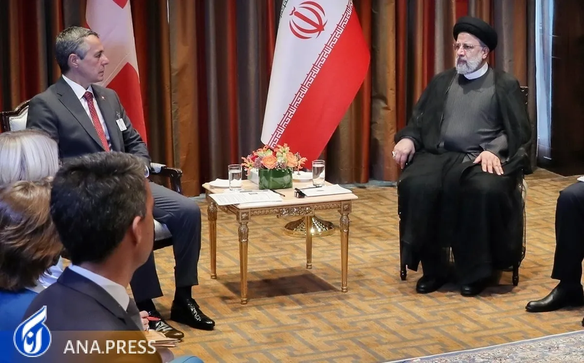 به گزارش گروه سیاست خبرگزاری آنا، سید ابراهیم رئیسی رئیسجمهوری اسلامی ایران عصر امروز به وقت محلی در دیدار آقای گای پارملین رئیسجمهور سوئیس که در محل اقامت رئیسجمهور انجام شد، روابط ایران و سوئیس را روابطی دوستانه و خوب خواند و گفت: افزایش همکاریهای تجاری و اقتصادی و بخصوص تسهیل روابط پولی و بانکیِ دو کشور ضرورت دارد.