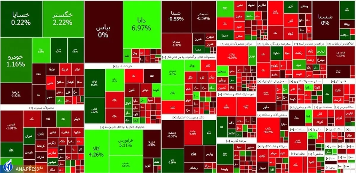 وپاسار، میدکو و فارس مؤثرترین نمادها در افت امروز شاخص بودند؛ همچنین خگستر، خساپا و شستا، عنوان پرتراکنشترین نمادها را به خود اختصاص دادند.