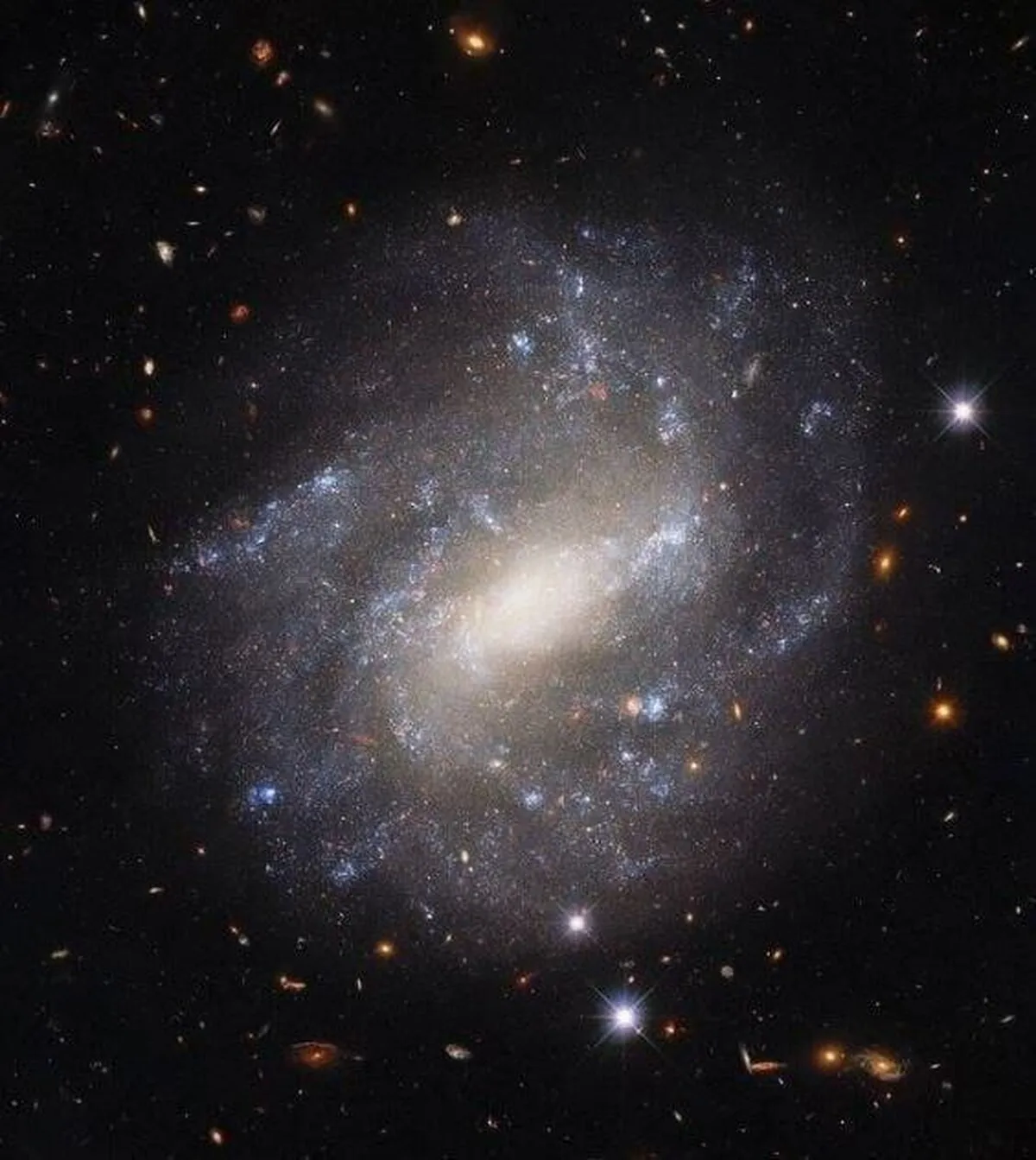 کهکشان UGC ۹۳۹۱ با ساختار میلهایشکل مرکزی، متشکل از ستارهها است.