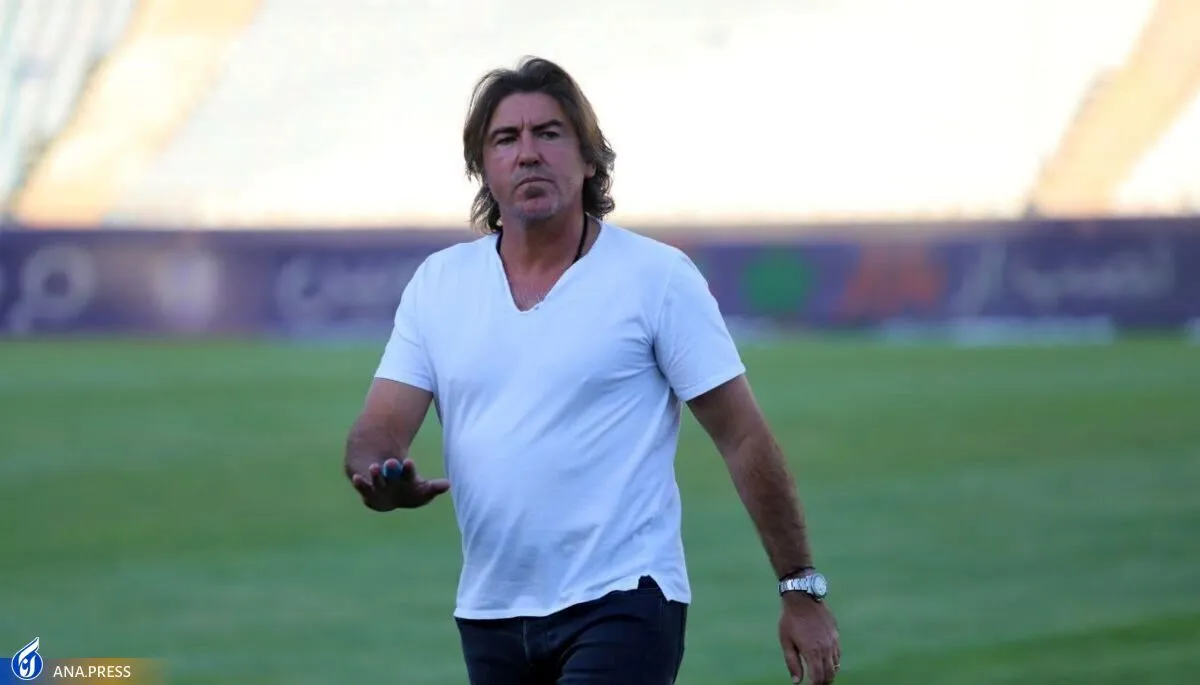 سرمربی تیم فوتبال استقلال در جایگاه ویژه بازی شاگردانش را تماشا می کند.