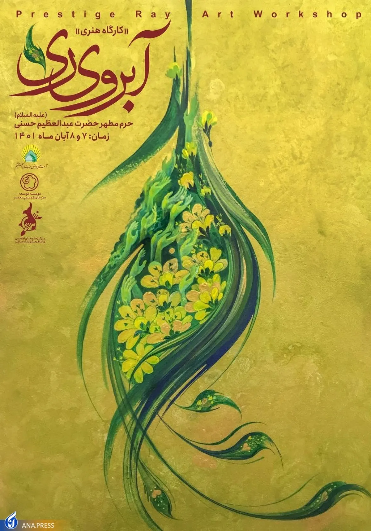کارگاه هنری «آبروی ری»، روزهای شنبه و یکشنبه مورخ ۷ و ۸ آبان ماه جاری، از ساعت ۱۰ الی ۱۷ در جوار بارگاه نورانی حضرت عبدالعظیم حسنی(ع) در شهر مقدس ری برپا و پذیرای عموم زائران و مجاوران خواهد بود.