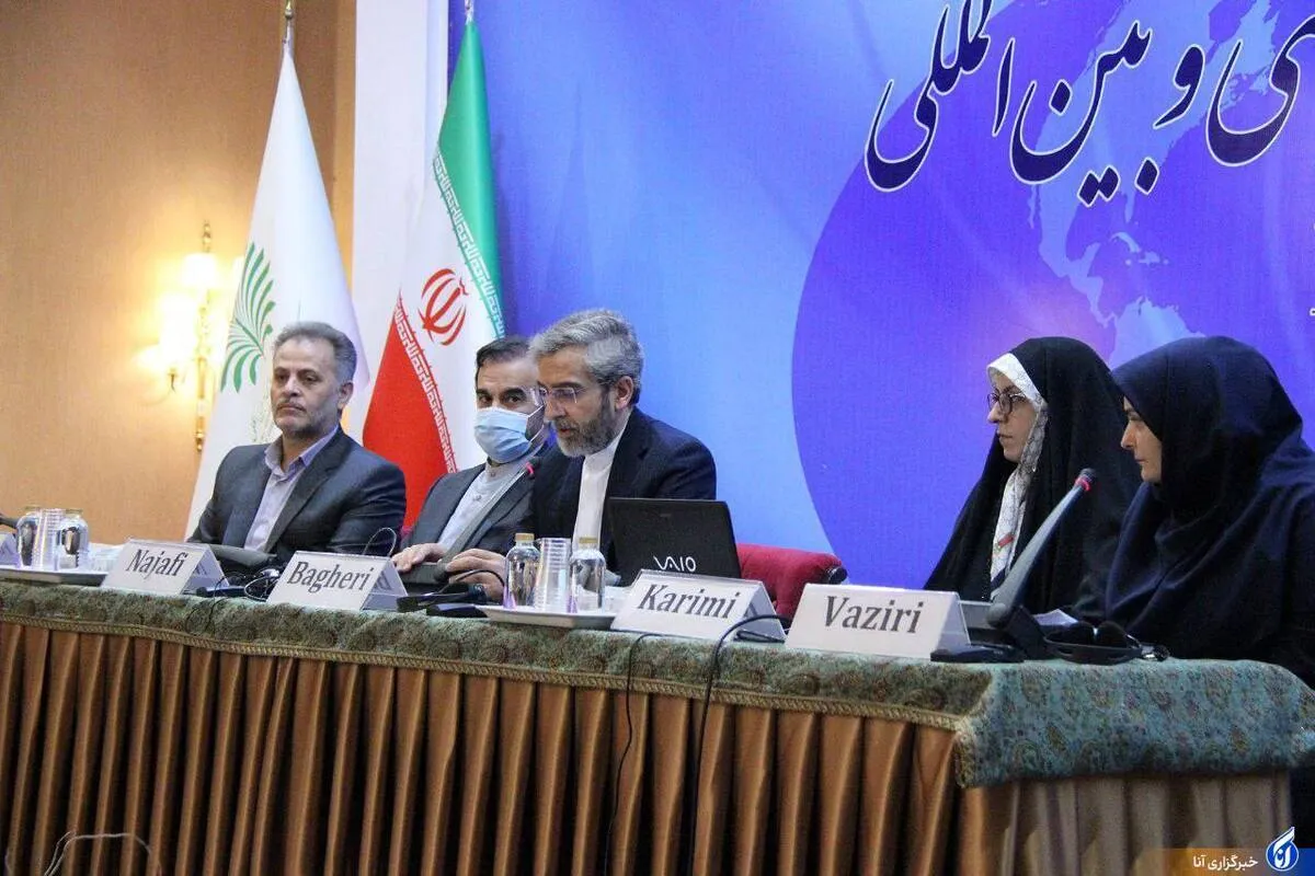 باقری در ادامه سخنانش خطاب به حاضران گفت: لطفاً فراموش نکنید که ایران پیش از این، تحت شدیدترین تحریمهای اقتصادی یکجانبه آمریکا و متحدان اروپایی آن متعاقب خروج غیرقانونی این کشور از برجام بوده است. مایلم مجدداً تأکید کنم که نه تنها ایالات متحده بهعنوان عامل اصلی وضع تحریمها، بلکه اتحادیه اروپا، تروئیکای اروپایی و سایر کشورهایی که از آنها تبعیت میکنند نیز باید پاسخگوی عواقب سنگین چنین تحریمهایی بر حقوق اولیه بشر مردم ایران باشند.