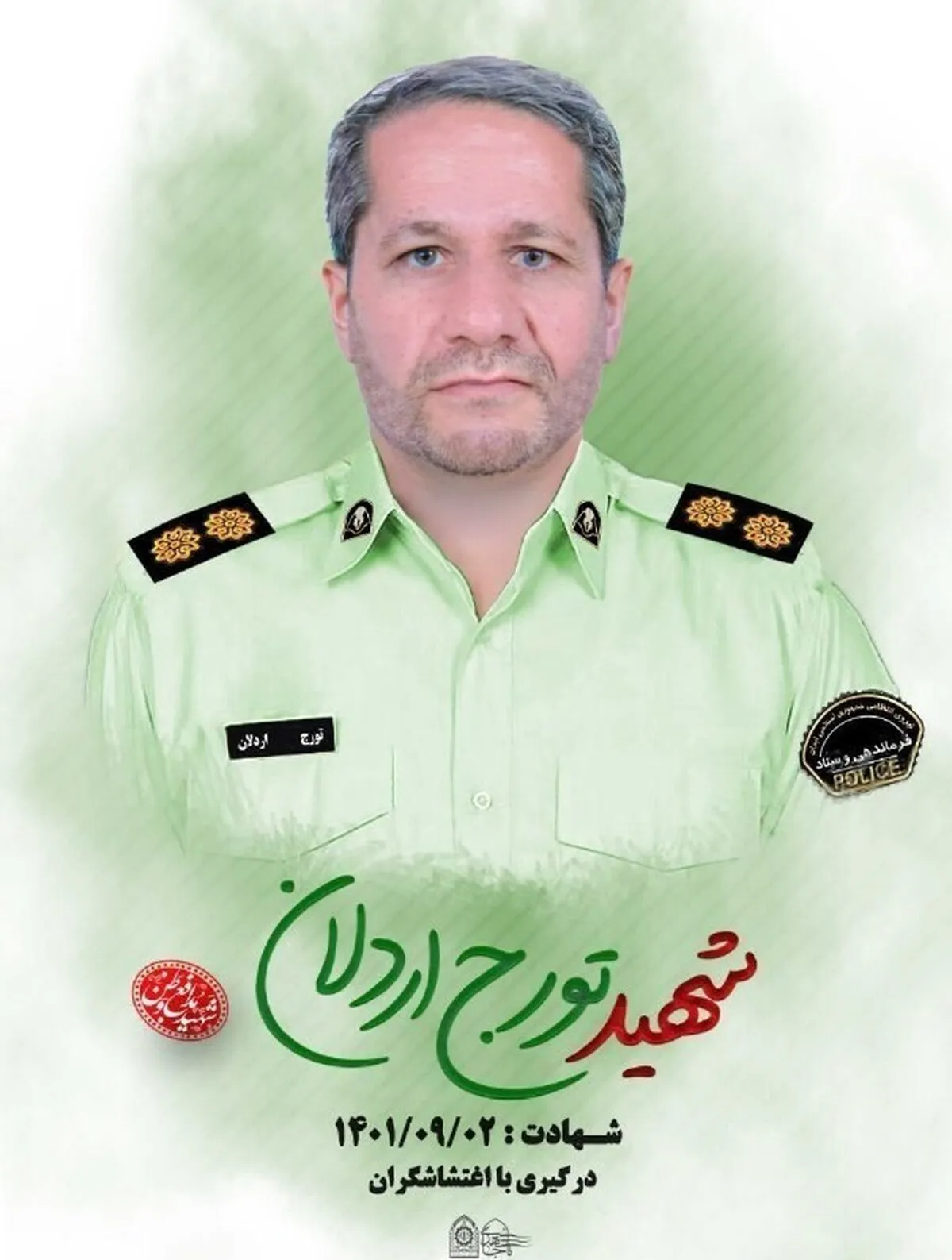 تورج اردلان از نیروهای انتظامی کردستان در بیمارستان ولیعصر تهران به درجه رفیع شهادت نائل آمد.