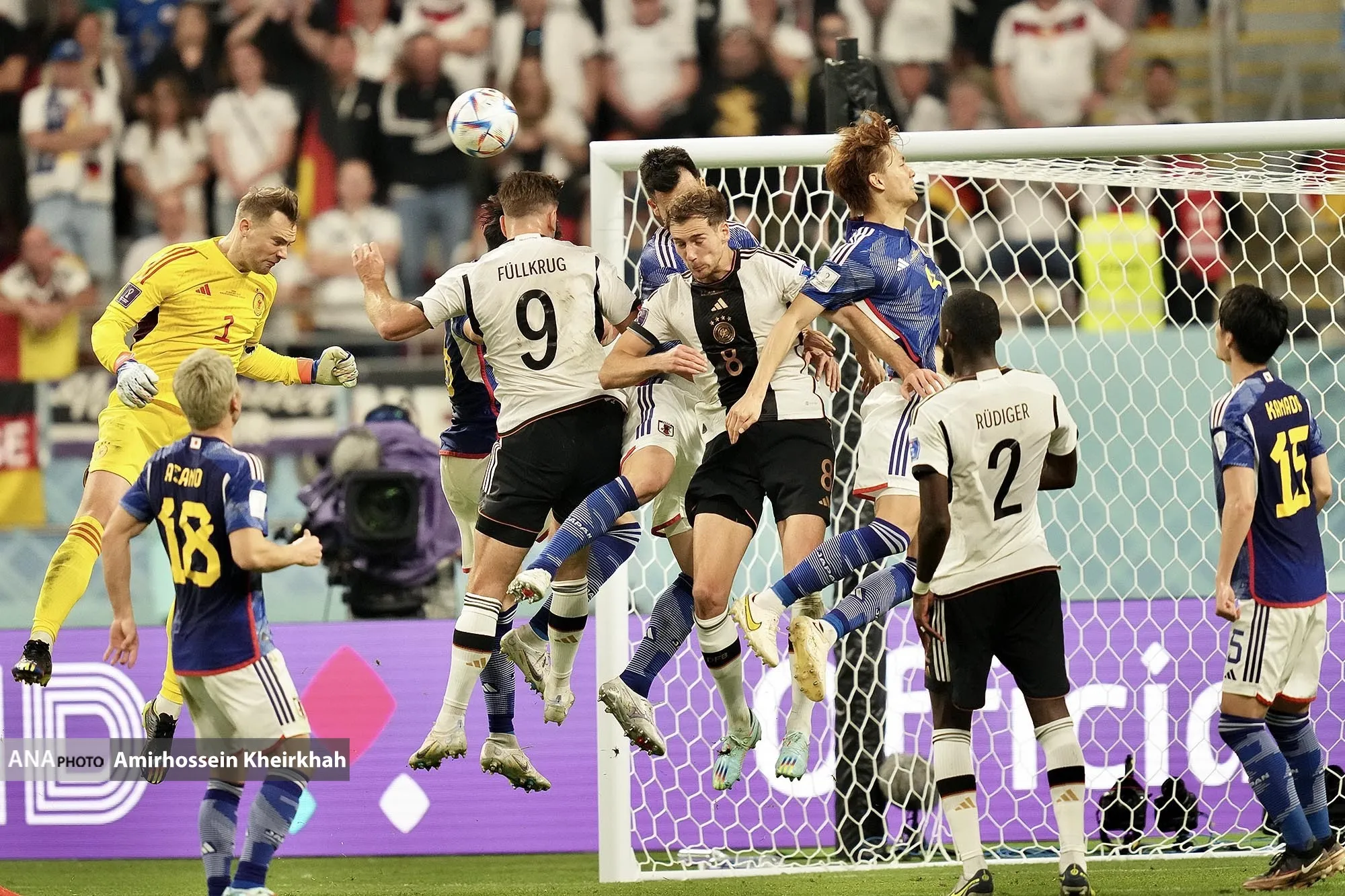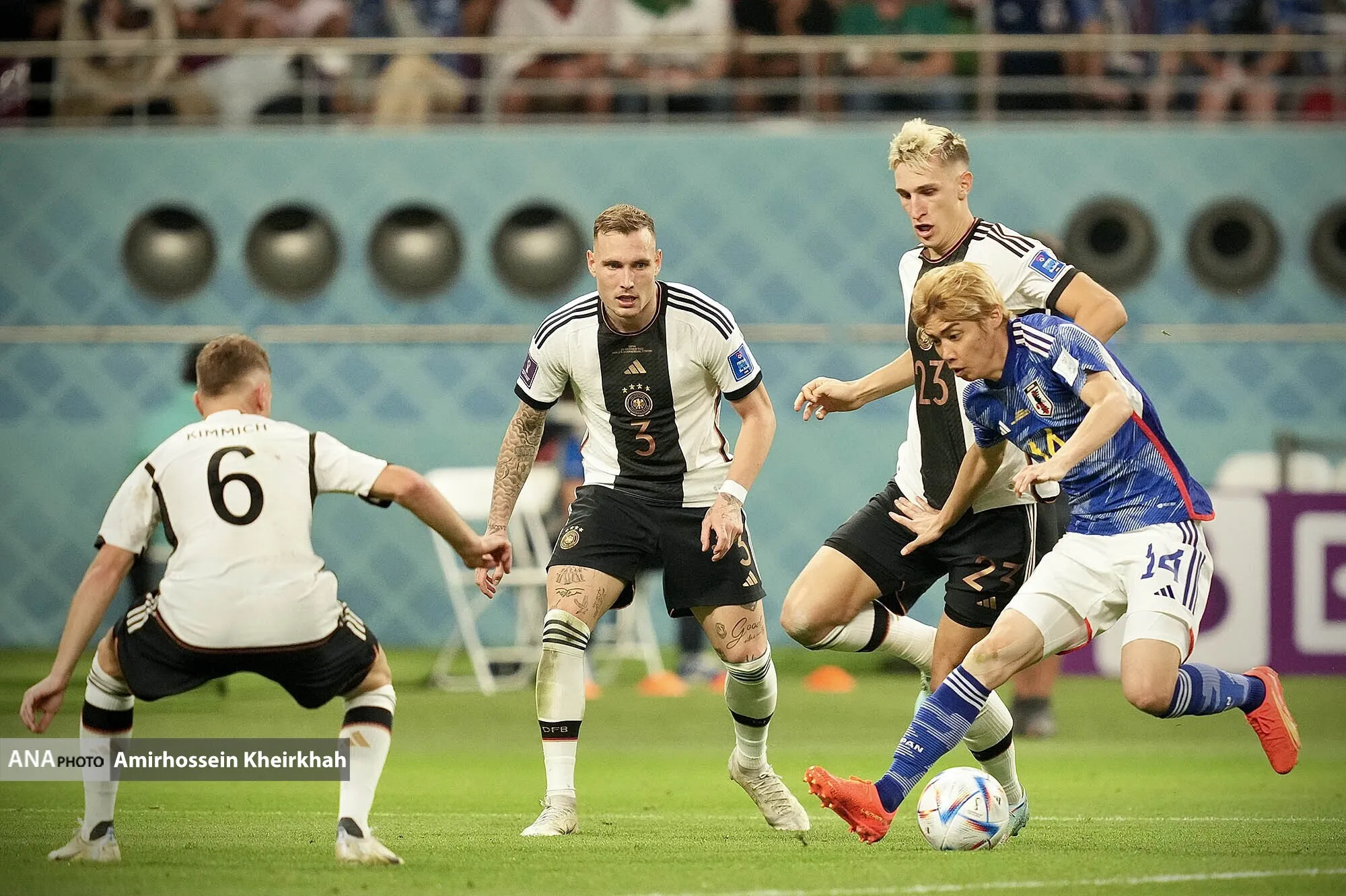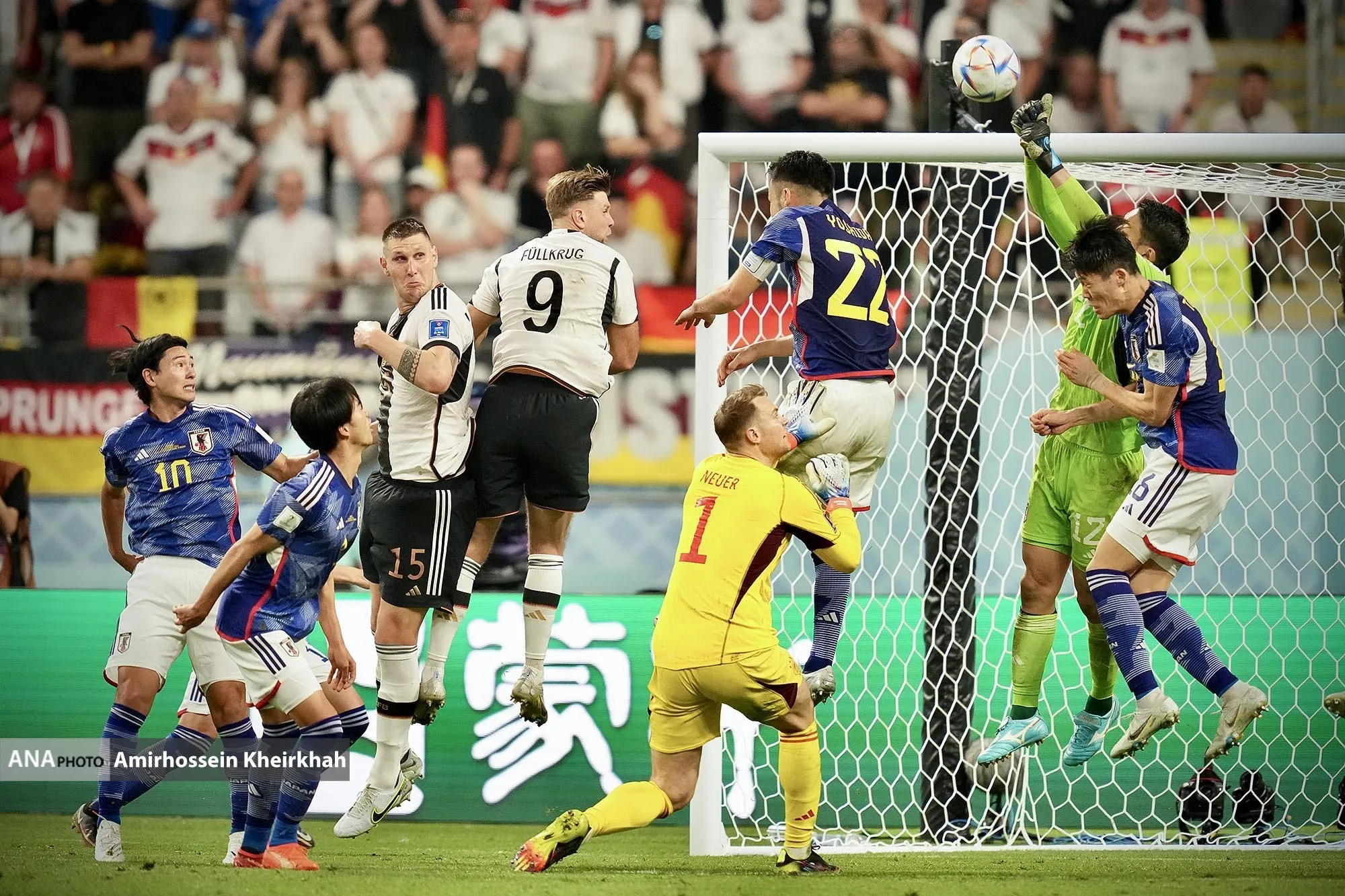 در جریان مسابقات جام جهانی ۲۰۲۲ قطر در گروه E ،تیم فوتبال ژاپن از ساعت ۱۶:۳۰ به وقت ایران به مصاف آلمان رفت، که این دیدار با نتیجه ۲ بر ۱ به سود ژاپن پایان یافت.