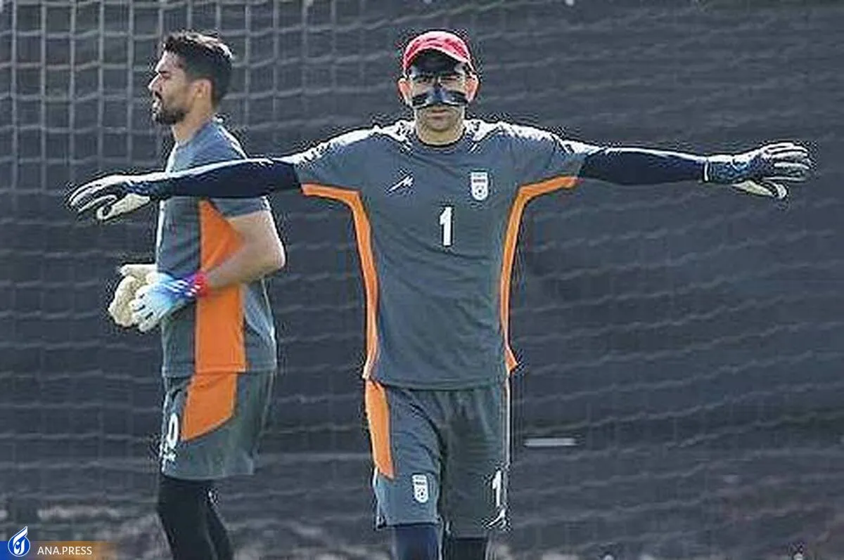 دروازه بان تیم ملی فوتبال کشورمان امروز با ماسک محافظ تمرین کرد.