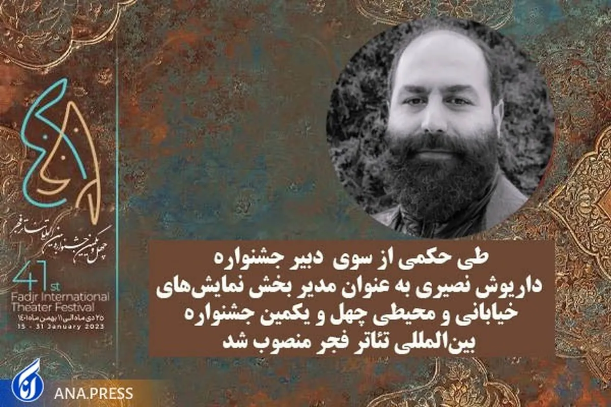 به گزارش گروه فرهنگ خبرگزاری آنا، کوروش زارعی دبیر چهل و یکمین جشنواره بین المللی تئاتر فجر در حکمی داریوش نصیری را به عنوان مدیر بخش خیابانی جشنواره منصوب کرد.