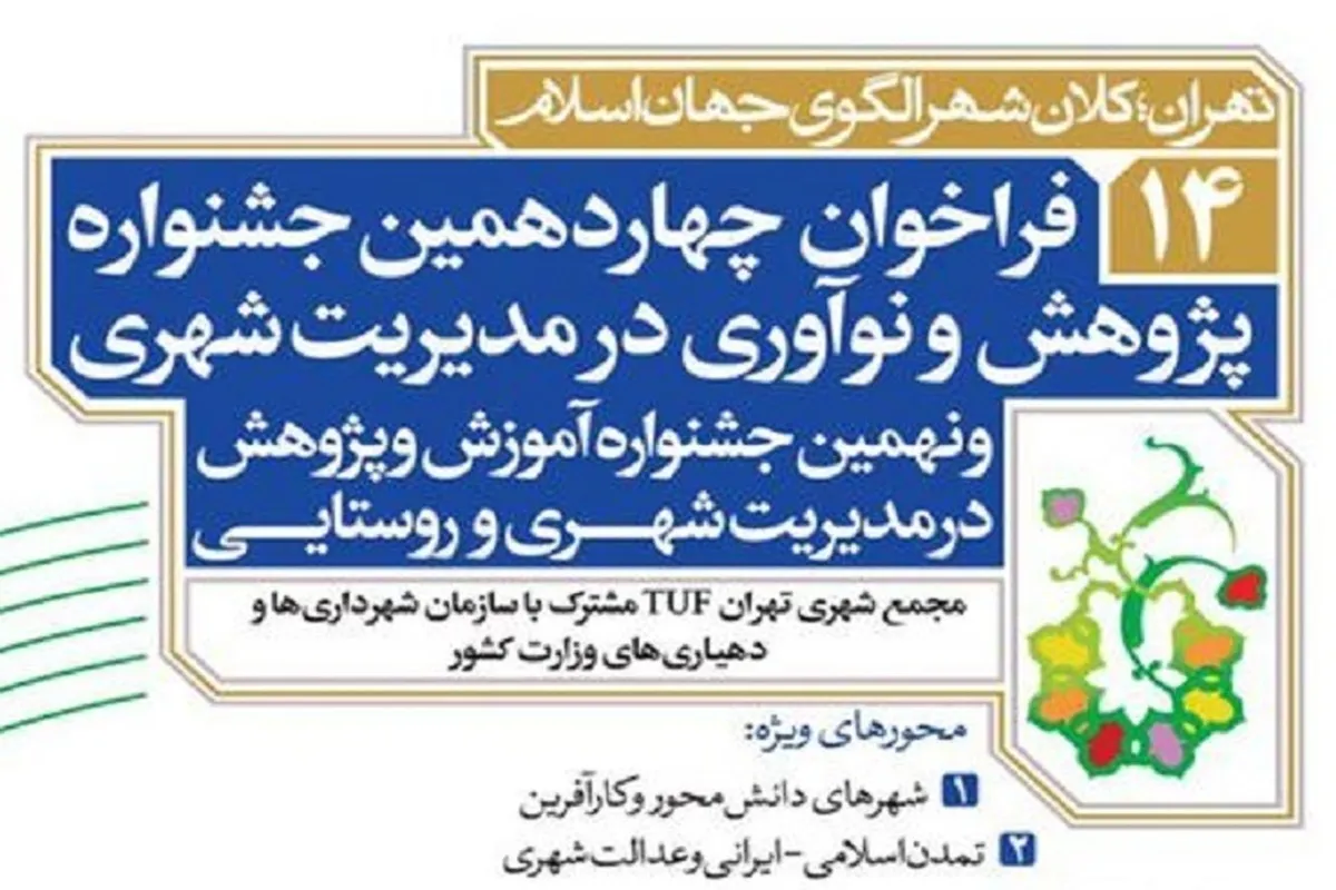 بر اساس این گزارش چهاردهمین دوره جشنواره پژوهش و نوآوری در مدیریت شهری (مجمع شهری تهران) و نهمین جشنواره آموزش و پژوهش در مدیریت شهری و روستایی به صورت مشترک با سازمان شهرداریها و دهیاریهای کشور و با مشارکت شورای عالی استان ها، شورای اسلامی شهر تهران و مجمع شهرداران کلانشهرهای ایران و همکاری دانشگاهها و نهادهای علمی و تحقیقاتی برگزار خواهد شد. این دوره از این جشنواره در ۹ محور علمی و تخصصی؛ توسعه مدیریت و حکمروایی شهری، خدمات شهری و محیط زیست، شهرسازی و معماری، ایمنی و مدیریت بحران، اجتماعی و فرهنگی، مالی و اقتصاد شهری، مدیریت توسعه روستایی (و سکونتگاههای غیررسمی)، امور زیربنایی، حمل و نقل و ترافیک و نوآوری شهری و هوشمندسازی و با دو محور ویژه ۱. شهرهای دانش محور و کارآفرین ۲. تمدن اسلامی – ایرانی و عدالت شهری برگزار میشود.
