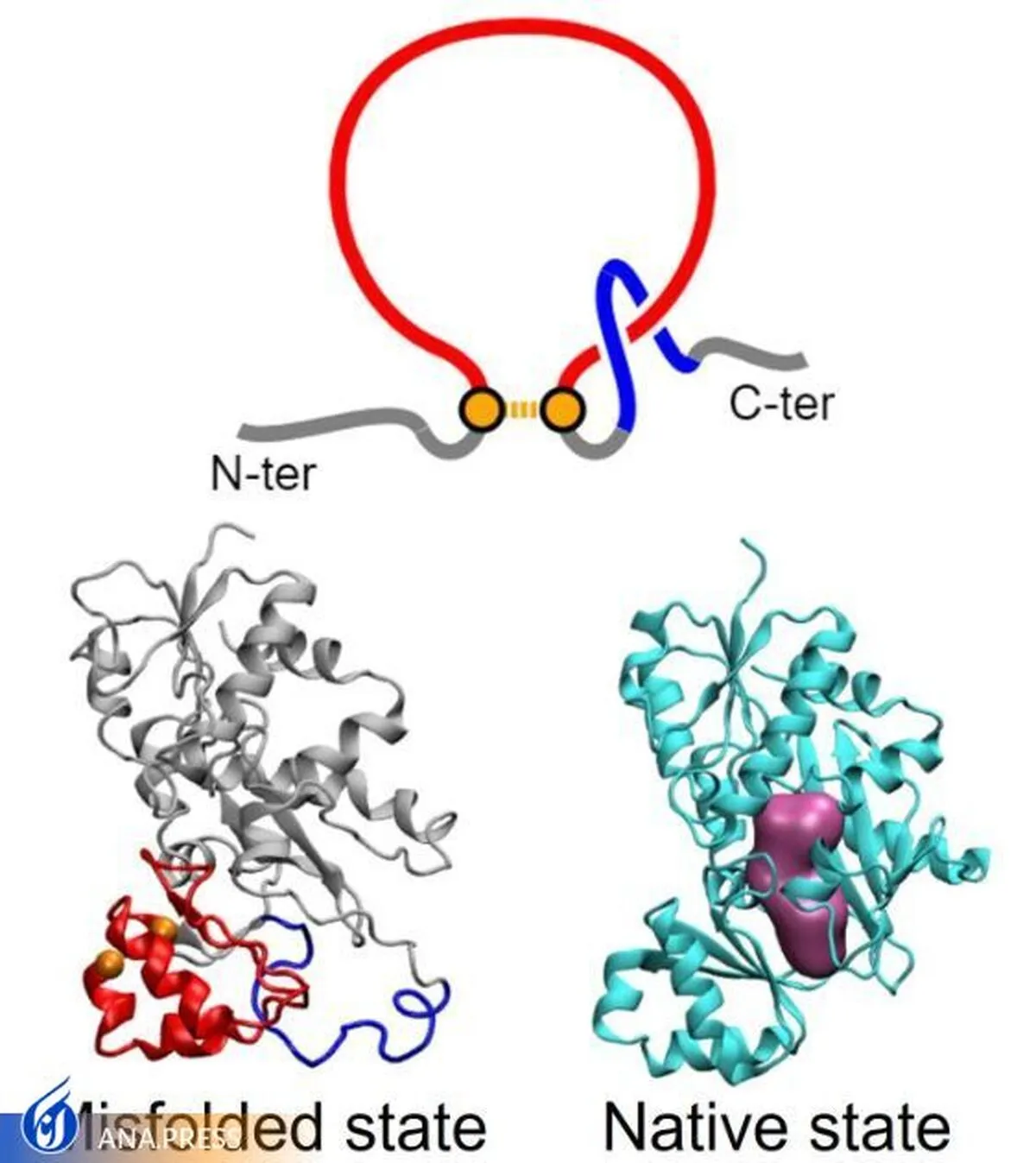 جیانگ میگوید: در مدلهای خود، کلاس جدیدی از پروتئینها را پیدا کردیم که به اشتباه تاخورده شدند که آن را «درهمتنیدگی کمند غیرکووالانسی» مینامیم. اساساً، بخشی از پروتئین یک حلقه بسته تشکیل میدهد و یک انتهای پروتئین به اشتباه از حلقه عبور میکند و برای مدت طولانی به دام میافتد.