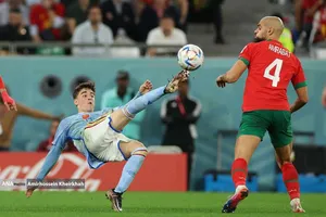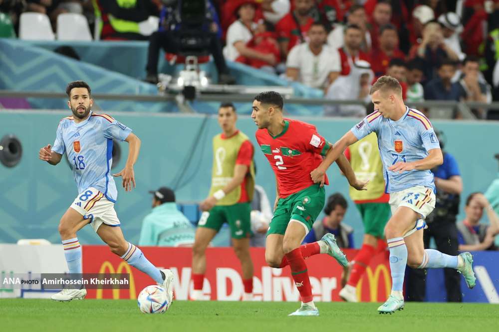 دیدار تیم های ملی فوتبال اسپانیا و مراکش در رقابت های جام جهانی ۲۰۲۲ قطر از ساعت ۱۸:۳۰برگزار شد،که در این مسابقه تیم مراکش در ضربات پنالتی تیم اسپانیا را شکست داد و به مرحله بعد صعود کرد.