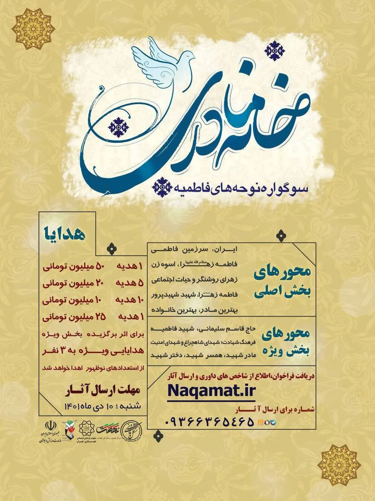 فراخوان سوگواره نوحه‌های فاطمیه «خانه مادری» اعلام شد