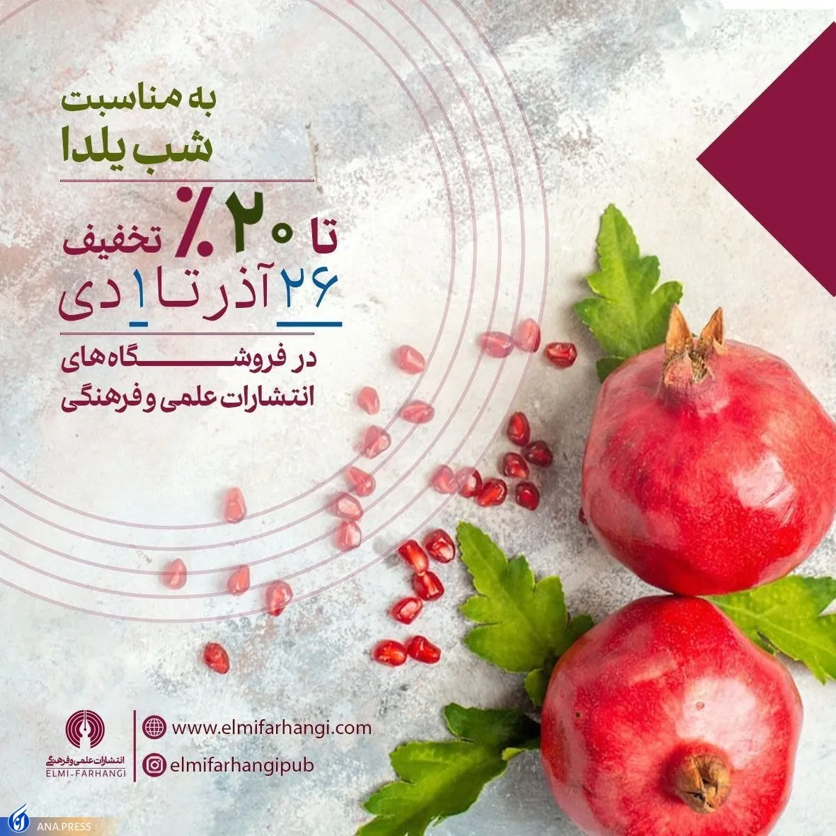 انتشارات علمی و فرهنگی با طرح تخفیف ۲۰ درصدی به استقبال شب یلدا رفته است.