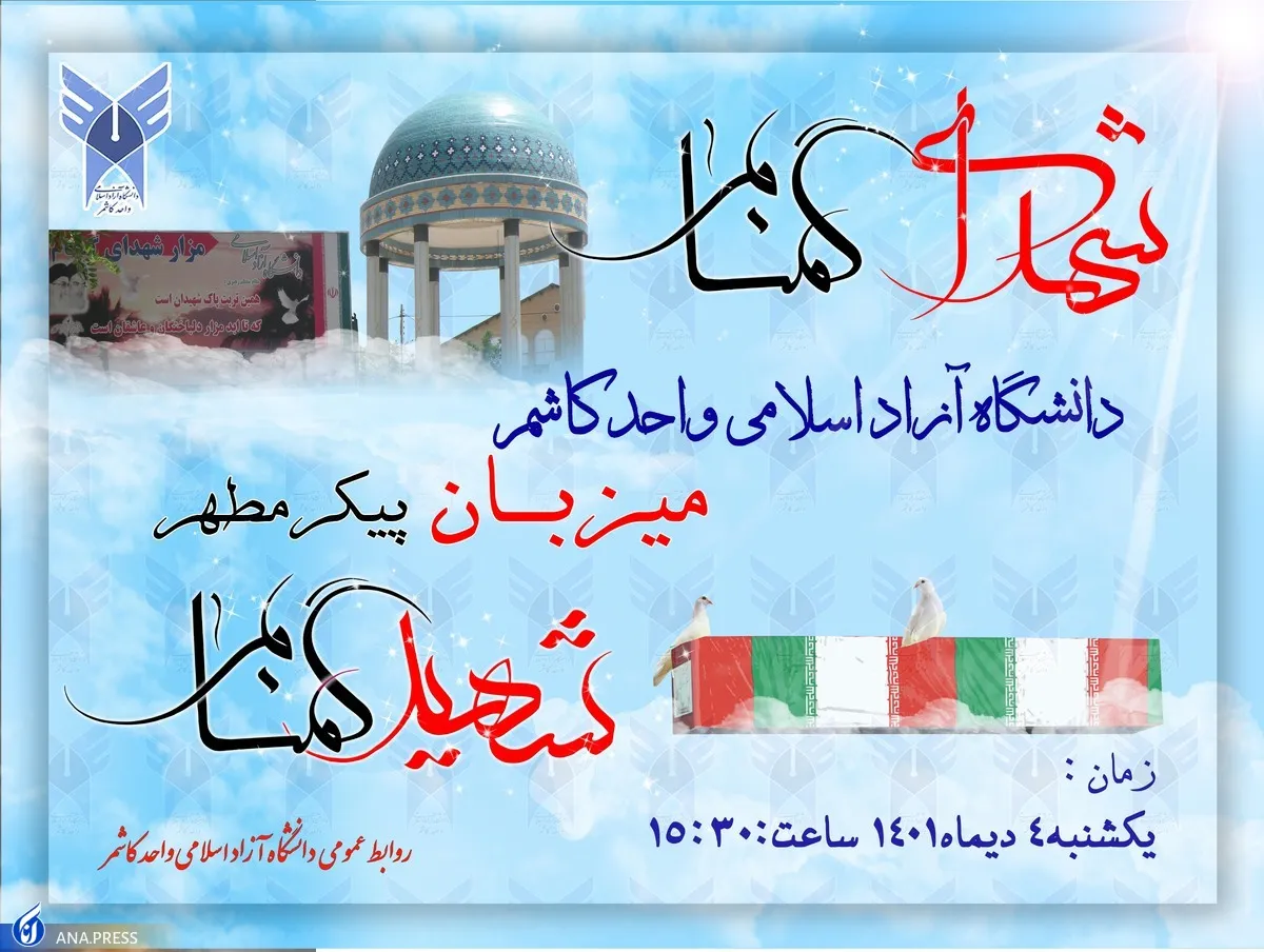 به گزارش خبرنگار آنا، شهدای گمنام دانشگاه آزاد اسلامی واحد کاشمر فردا و همزمان با دهه فاطمیه ساعاتی را میزبان شهید خوشنام خواهند بود.