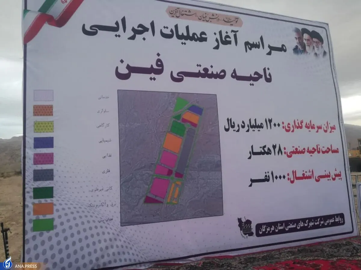 عملیات اجرایی ناحیه صنعتی فین با حضور مدیرعامل سازمان صنایع کوچک و شهرک های صنعتی ایران، مهدی دوستی استاندار هرمزگان، ۲ نفر از نمایندگان مردم استان در مجلس شورای اسلامی و مسئولان محلی در شهر فین آغاز شد.