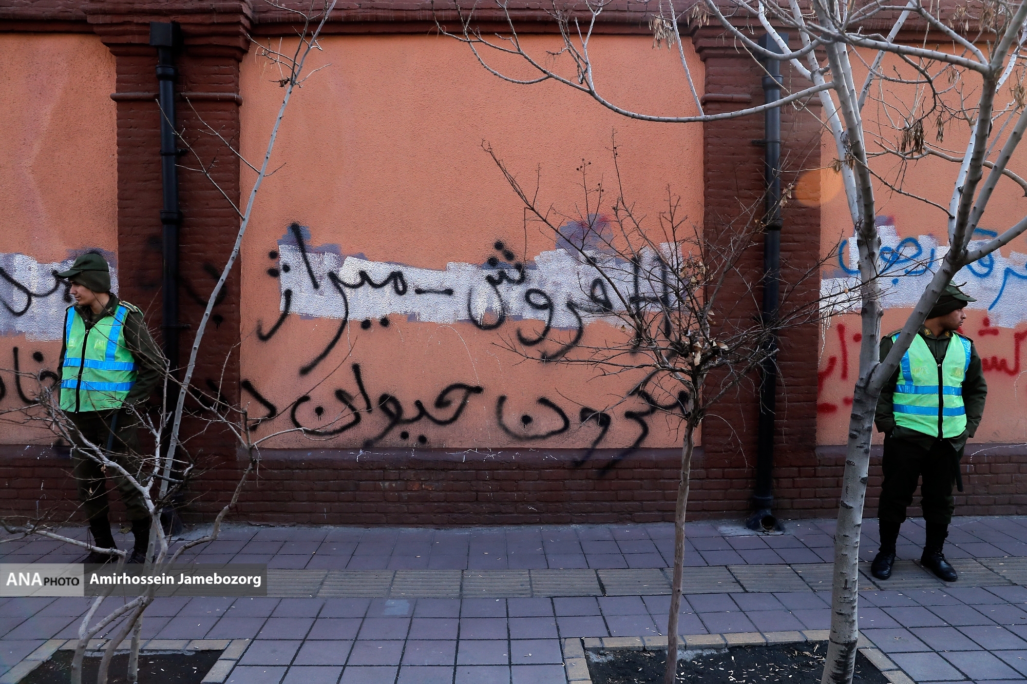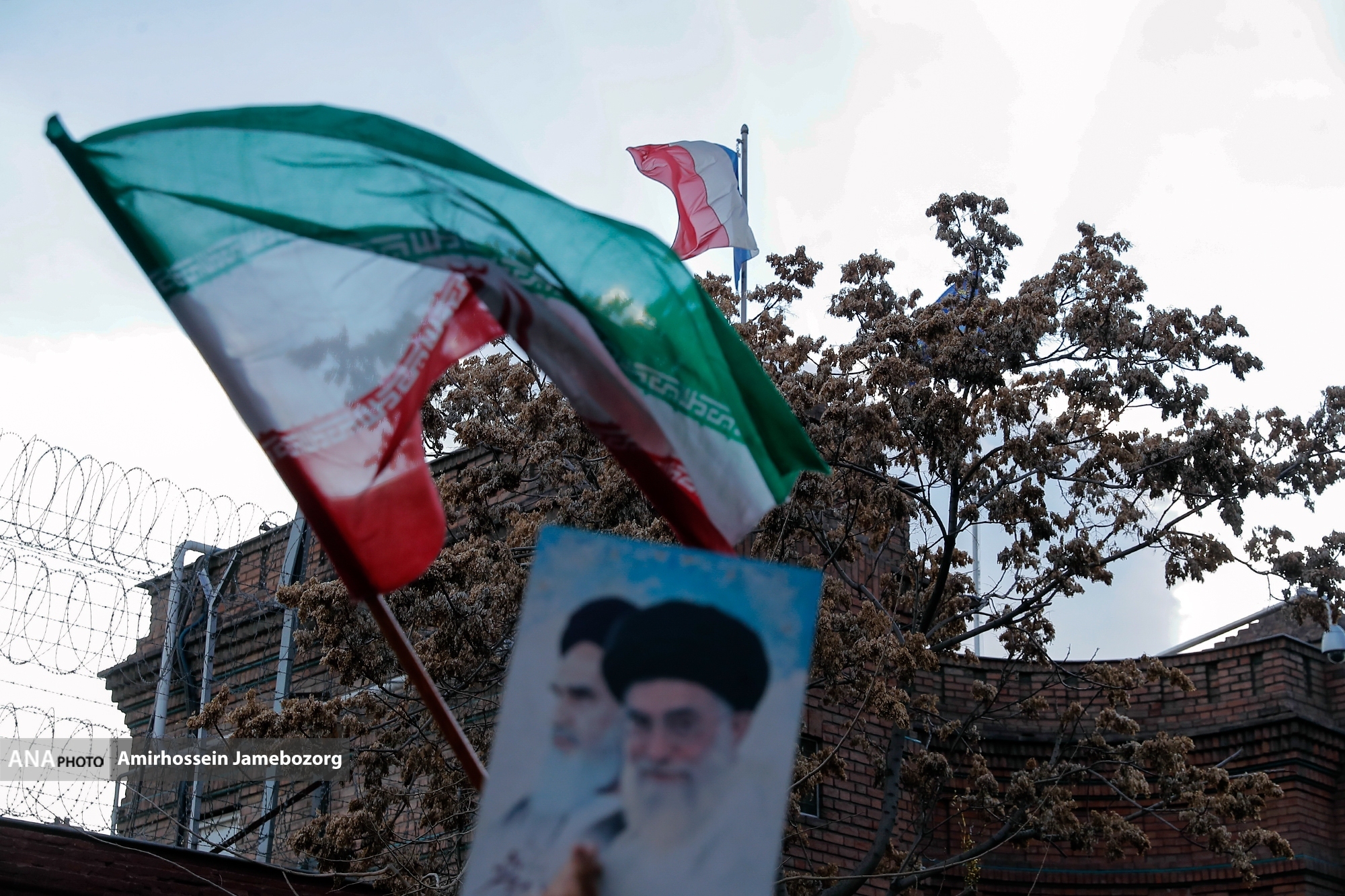 تجمع اعتراضی مردم تهران در مقابل سفارت فرانسه