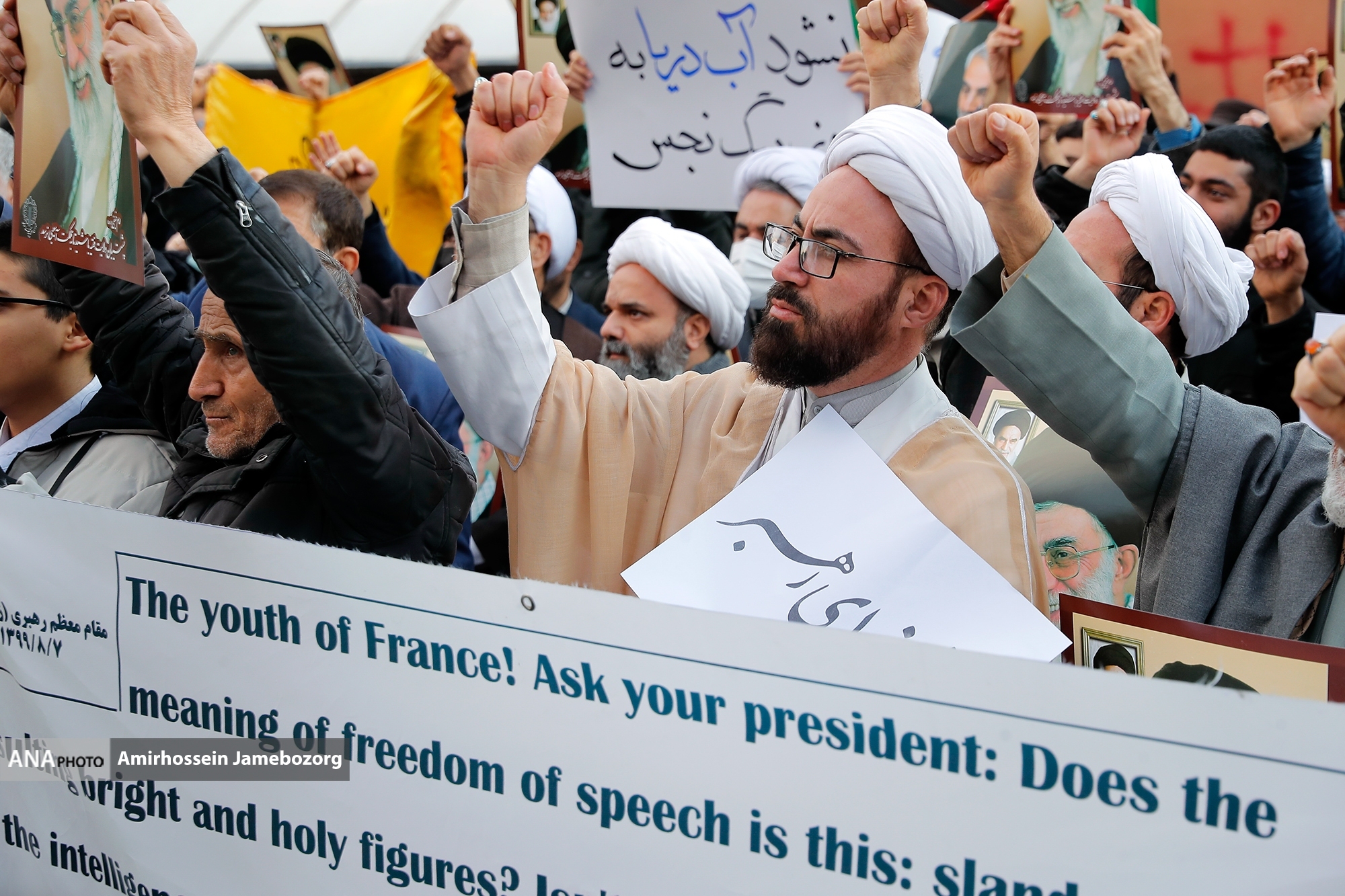 مردم ولایتمدار و حوزویان تهران در اعتراض به اهانت و هتک حرمت نشریه شارلی ابدو به مقام شامخ مرجعیت و ولایت، روز یکشنبه مقابل سفارت فرانسه در تهران تجمع کردند.