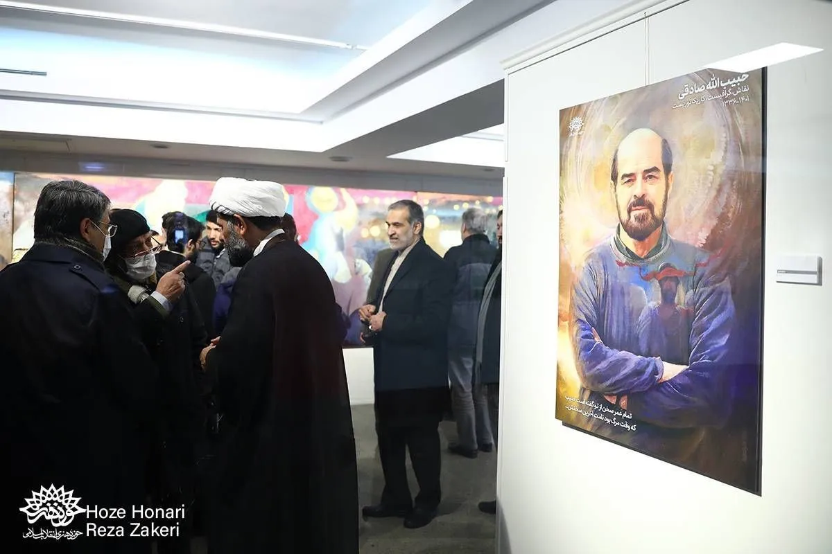 در آیین گشایش نمایشگاه «یاد حبیب» حجت الاسلام روح‌الله حریزاوی، قائم مقام سازمان تبلیغات اسلامی، محمدمهدی دادمان، رئیس حوزه هنری، علی فروزانفر معاون هنری حوزه هنری، محمد حبیبی مدیر مرکز هنرهای تجسمی بنیاد روایت فتح، عبدالرضا سهرابی، مدیردفترهنرهای تجسمی وزارت فرهنگ و ارشاد اسلامی، کوروش زارعی، مدیر مرکز هنرهای نمایشی حوزه هنری، نادر قشقایی، کامیار صادقی، حسین آقامیری، حسین عصمتی، حشمت الله نوروزی، علی پتگر، حسین حبیبی، سیدحمید شریفی، آل هاشم، عبدالحمید قدیریان، قدرت الله معماریان، علی شیخی، علیرضا امیرمقدم، عبدالله حاجی سیدحسن، صدیقه سلمان و خانواده زنده یاد حبیب الله صادقی حضور داشتند.این نمایشگاه که تا 5 بهمن ماه ادامه خواهد داشت، شامل ۳۲ پوستر از هنرمندانی چون ابوالفضل خسروی، امیر دستمردی، حامد مغروری، حسین یوزباشی، حمید قربان‌پور، لیلا نیرومند، مجید قادری، محمدرضا دوست‌محمدی، وحید حقی، علی وزیریان، یونس رجبی، محمدرضا فراهانی و دانیال فرخ به همراه ۷ تابلوی نقاشی از عبدالحمید قدیریان، صدیقه سلمان، منصوره عالیخانی، کامیار صادقی، حسین عصمتی، علی پتگر و سیدمسعود شجاعی طباطبایی است.