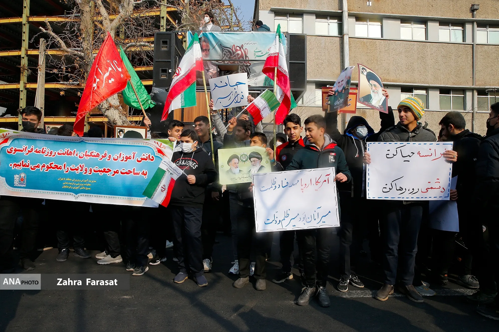 تجمع اعتراضی دانش آموزان مقابل سفارت فرانسه