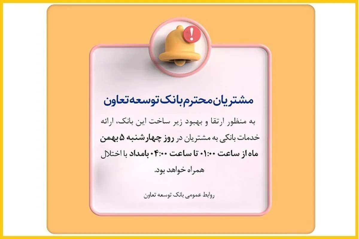 قطعی موقت سیستم شتاب بانک توسعه تعاون