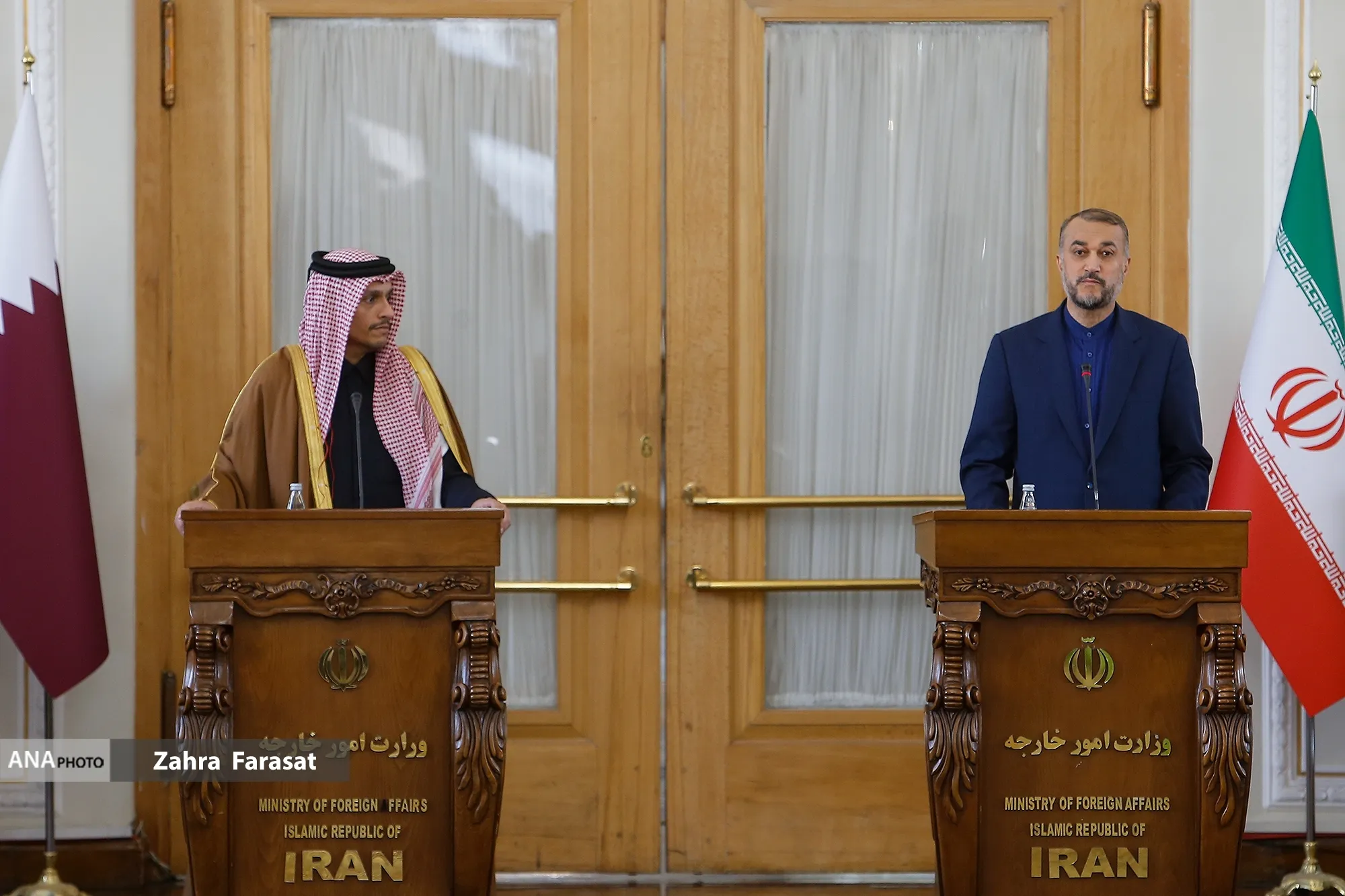 محمد بن عبدالرحمن آل ثانی وزیرخارجه قطر که به تهران سفر کرده است؛ ظهر یکشنبه ( ۹ بهمن ۱۴۰۱) با حسین امیر عبداللهیان وزیر امور خارجه دیدار و گفتگو کرد. وزرای خارجه دو کشور پس از دیدار در نشست خبری مشترک به سوالات خبرنگاران رسانه های گروهی پاسخ گفتند.