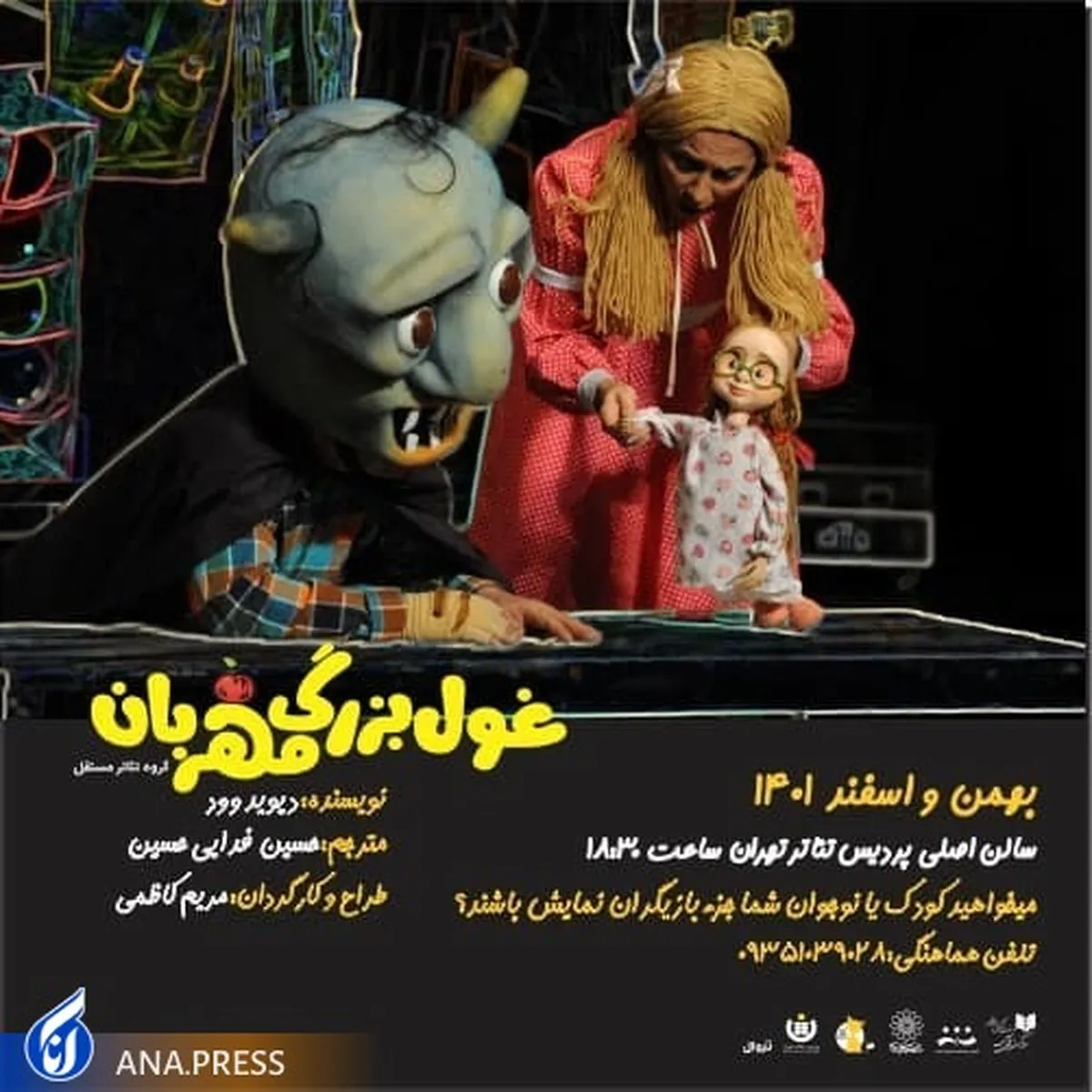 نمایش «غول بزرگ مهربان» به کارگردانی مریم کاظمی از ۱۳ بهمن ماه در سالن اصلی پردیس تئاتر تهران روی صحنه می‌رود.