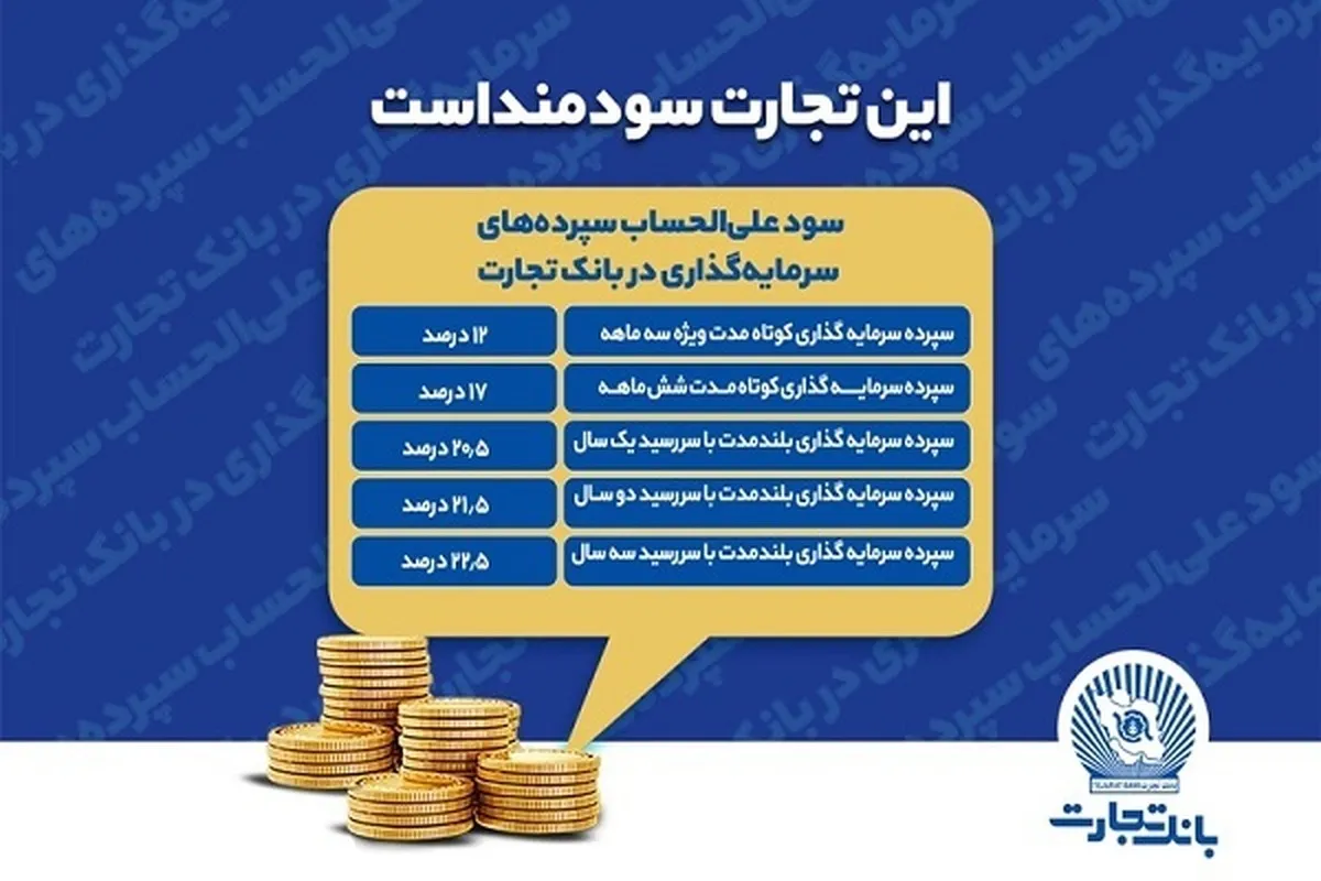 نرخهای جدید سود علیالحساب سپردههای سرمایهگذاری در بانک تجارت اعلام شد