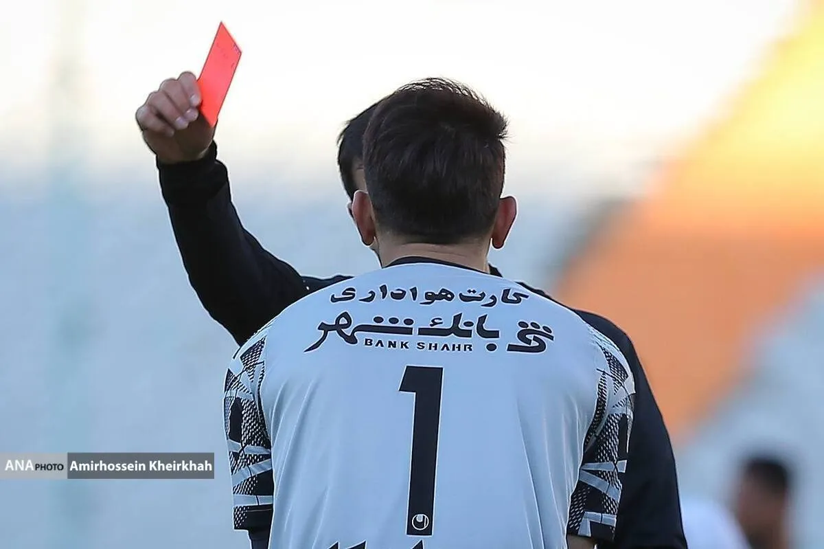 دروازهبان پرسپولیس پس از گرفتن کارت قرمز از سوی داور مبهوت به وی اعتراض میکرد.