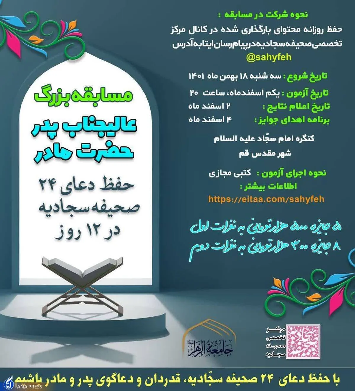 به عشق پدر و مادرتان صحیفه سجادیه حفظ کنید و جایزه بگیرید